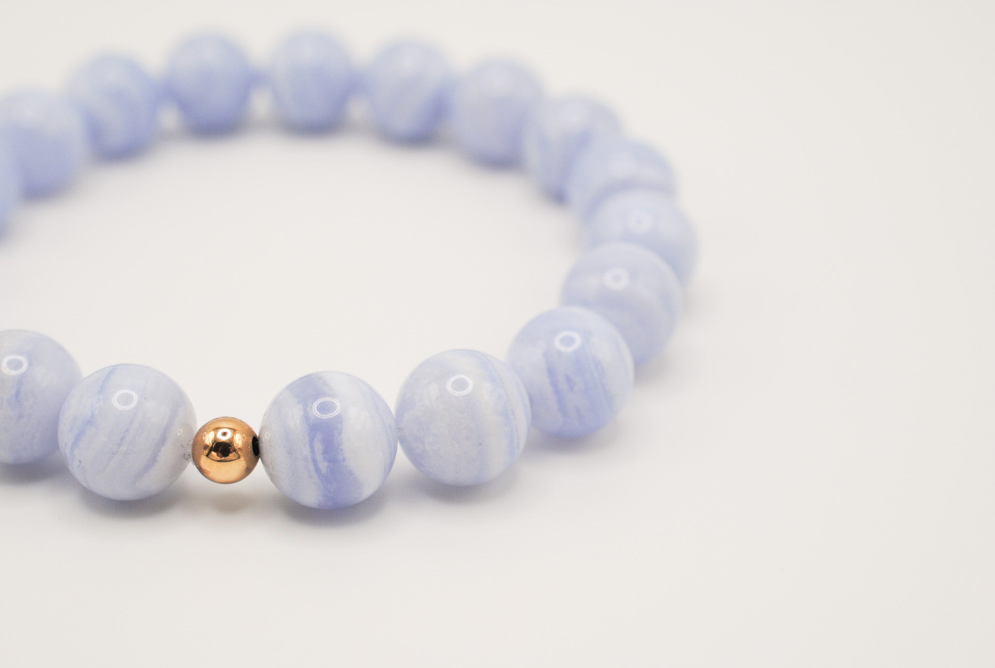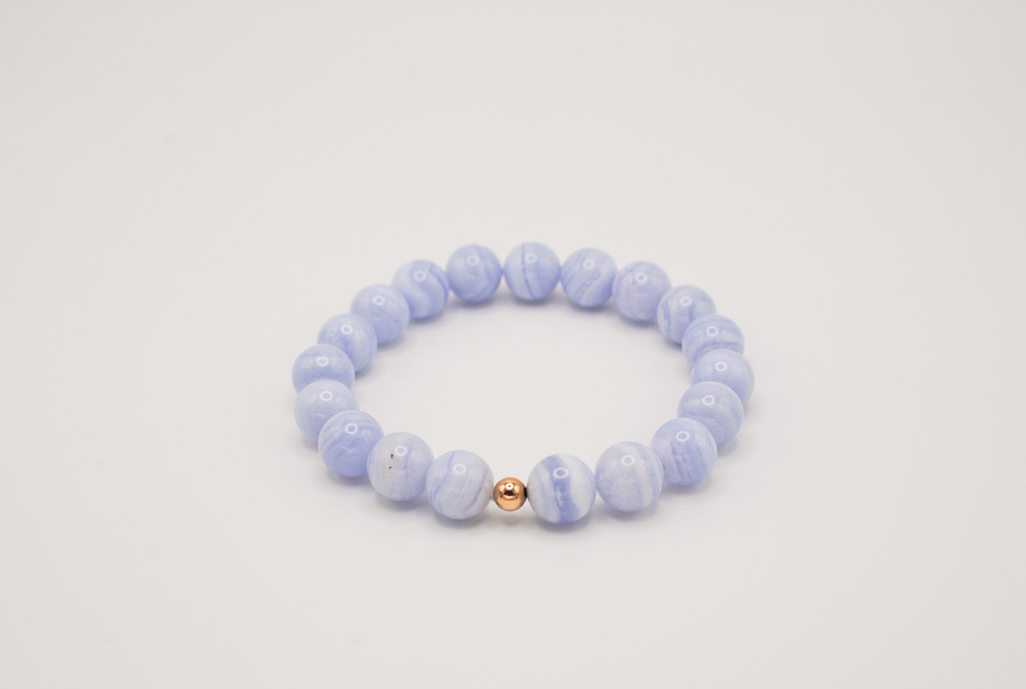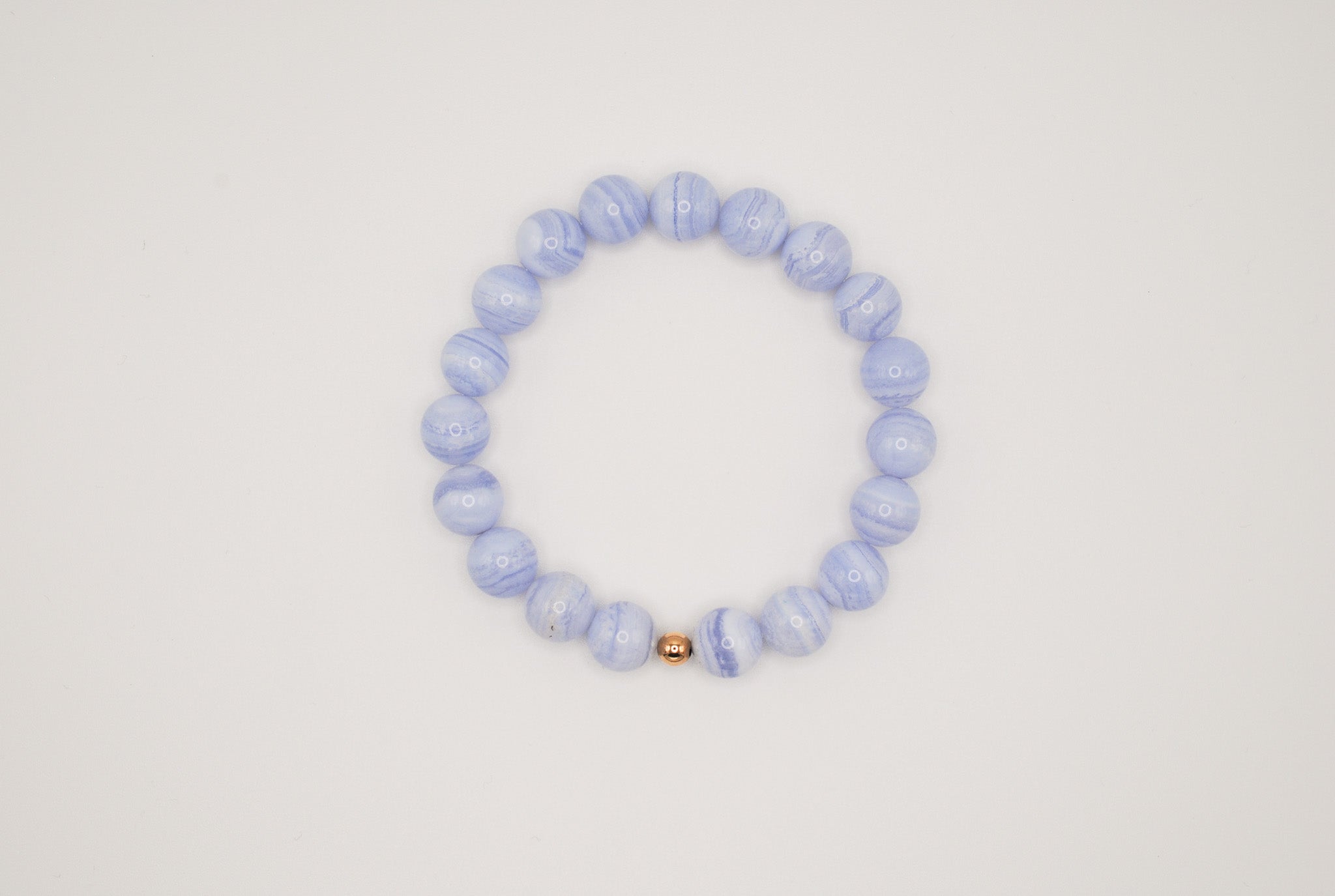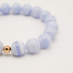 Details: 10mm beaded blue lace agate with 1 14K Gold Filled bead