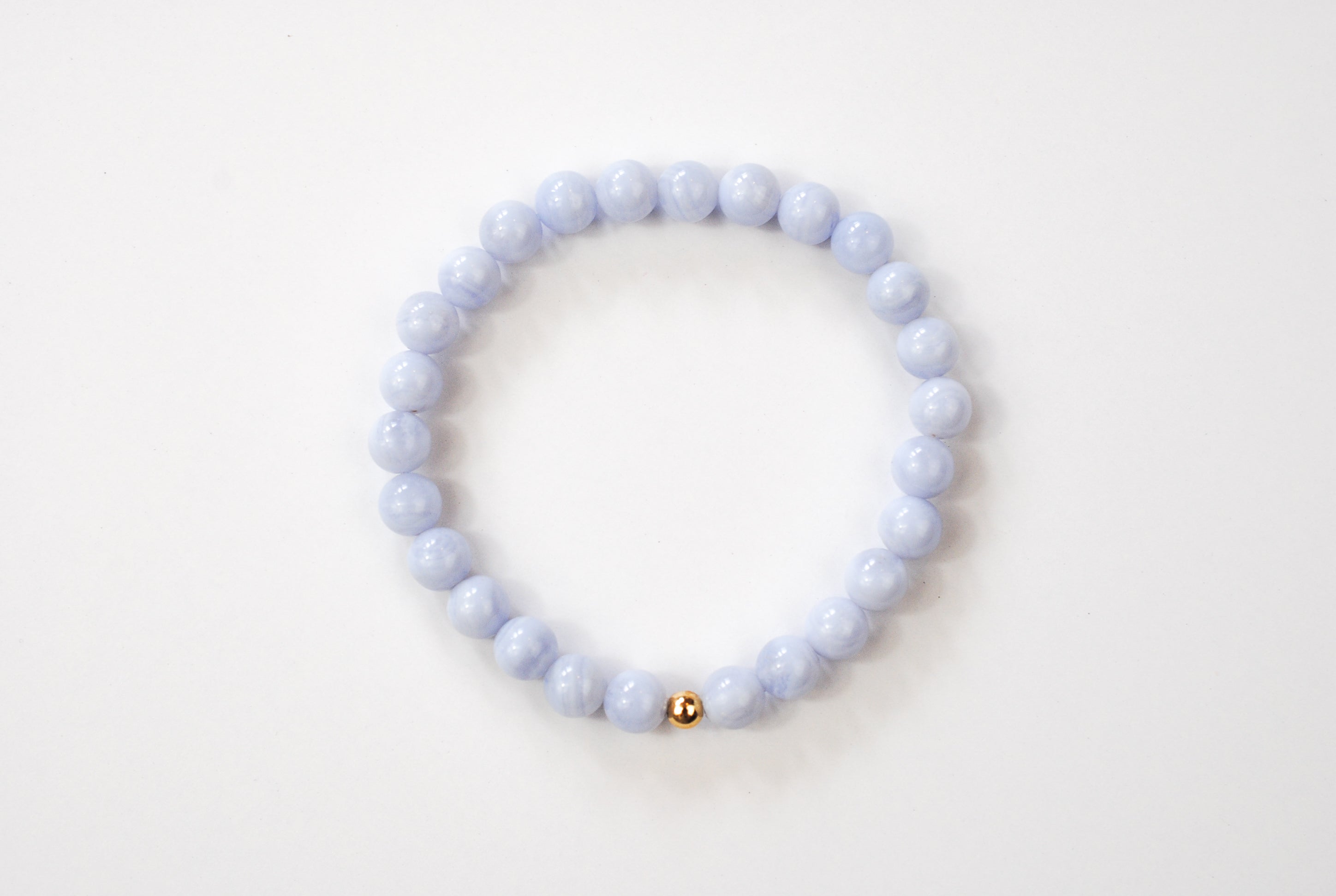 Details: 6mm beaded blue lace agate stones with 1 14K Gold Filled bead