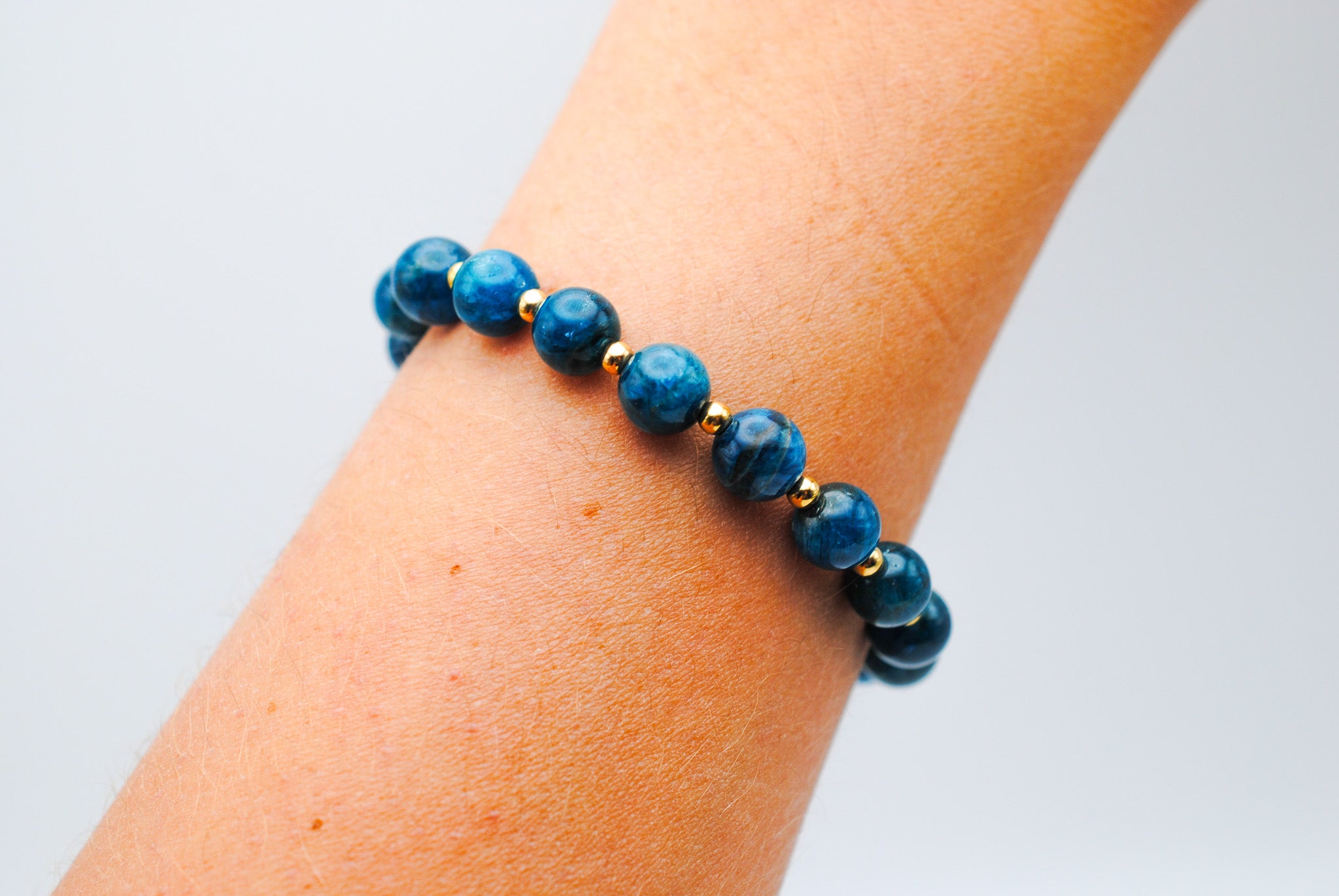 Details: Alternating 8mm apatite and 14K Gold Filled beads