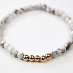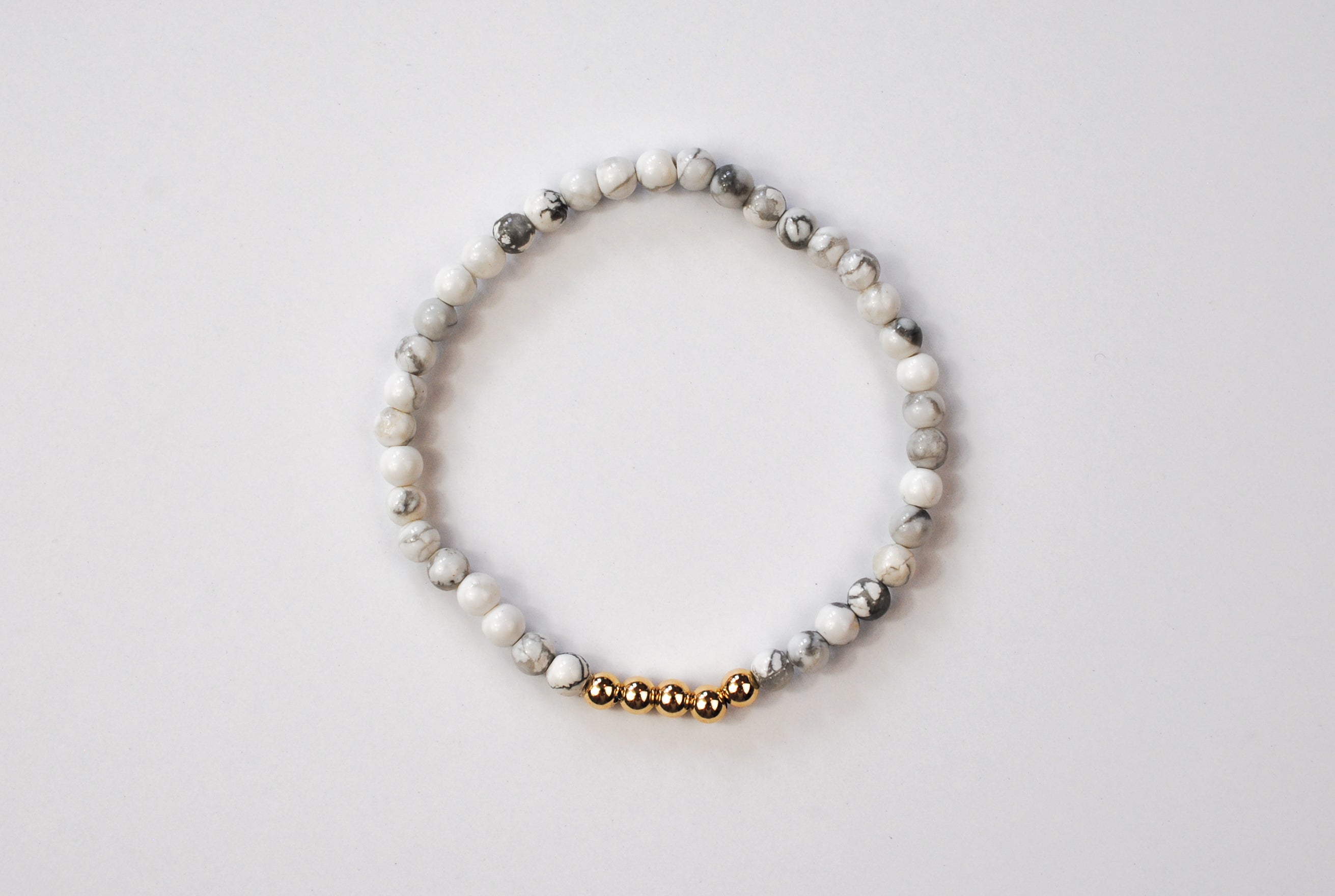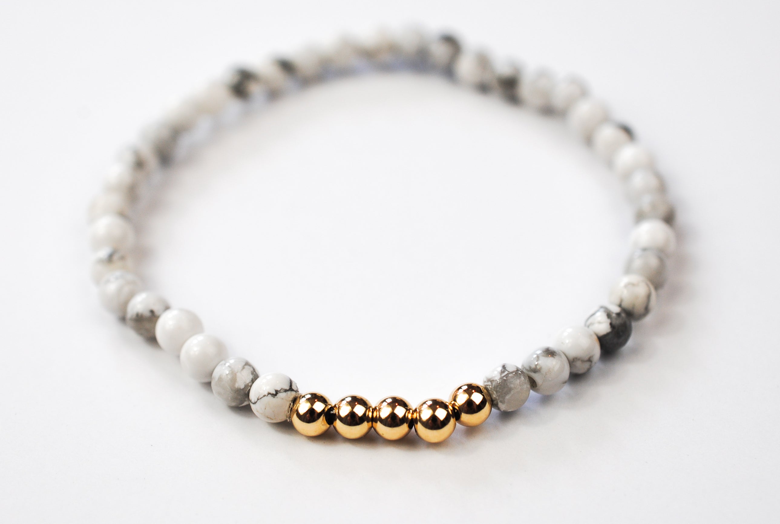 Details: 4mm beaded howlite gemstones with 5 14K Gold Filled bead