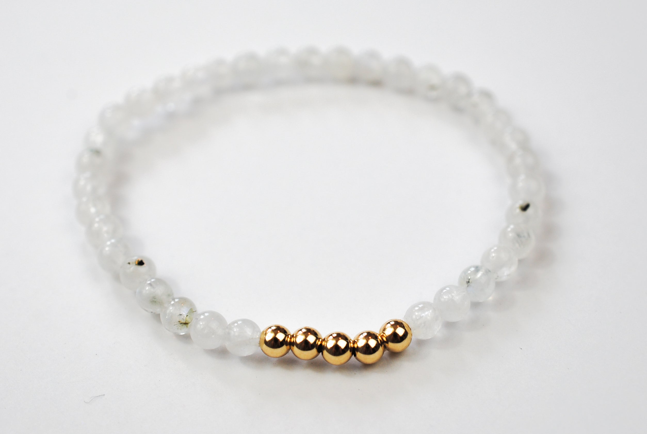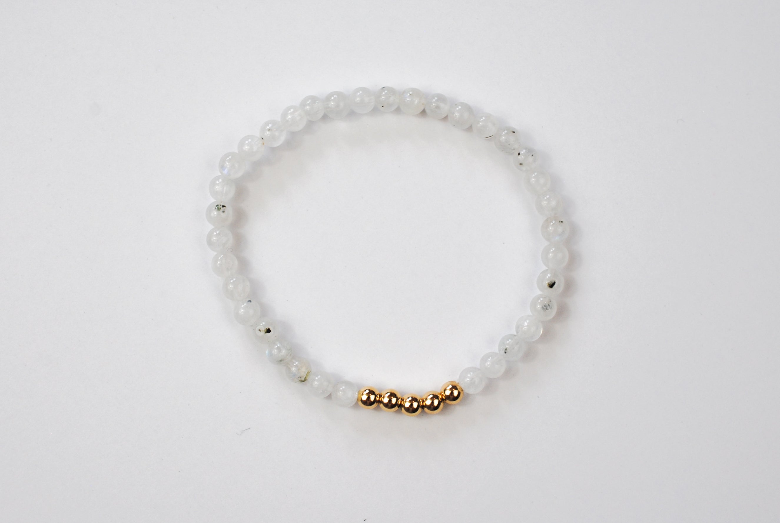 Details: 4mm beaded moonstone gemstones with 5 14K Gold Filled bead