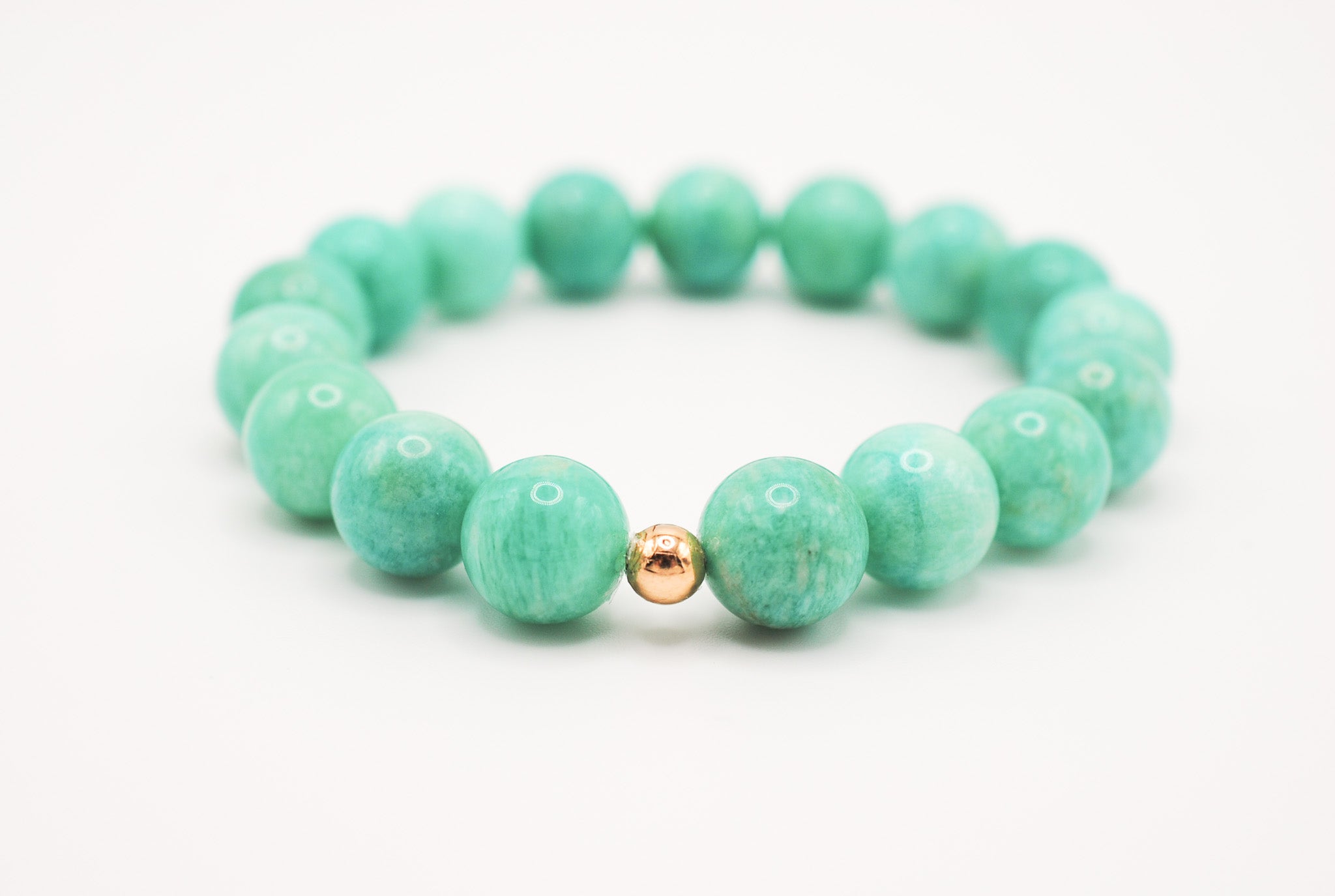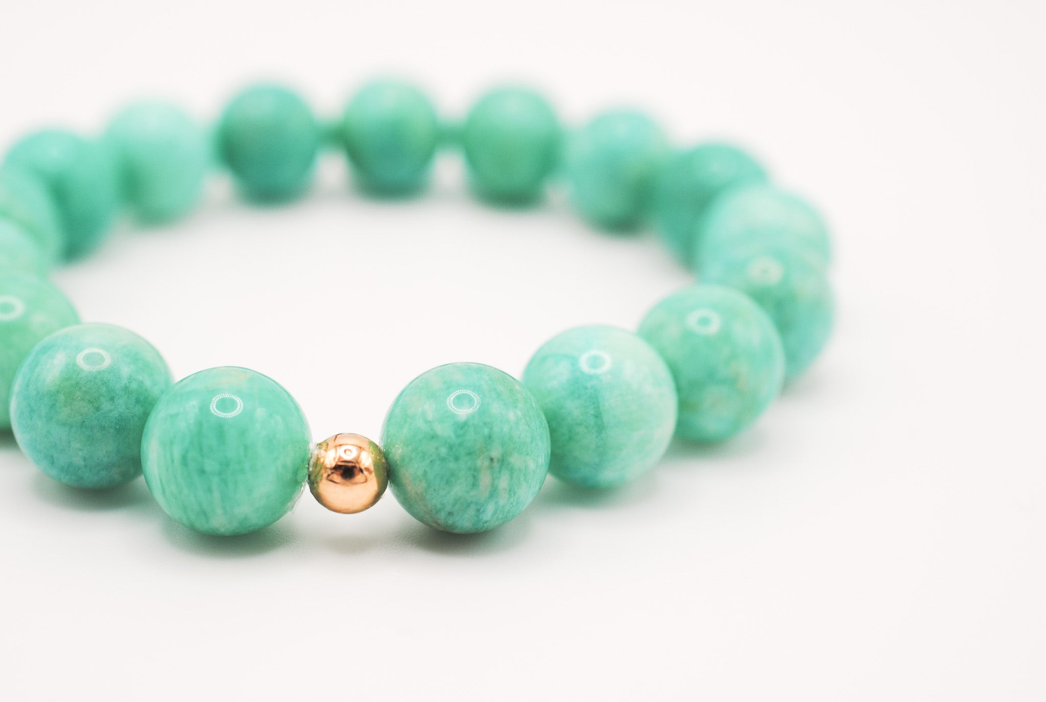 Details: 10mm beaded amazonite with 1 14K Gold Filled bead