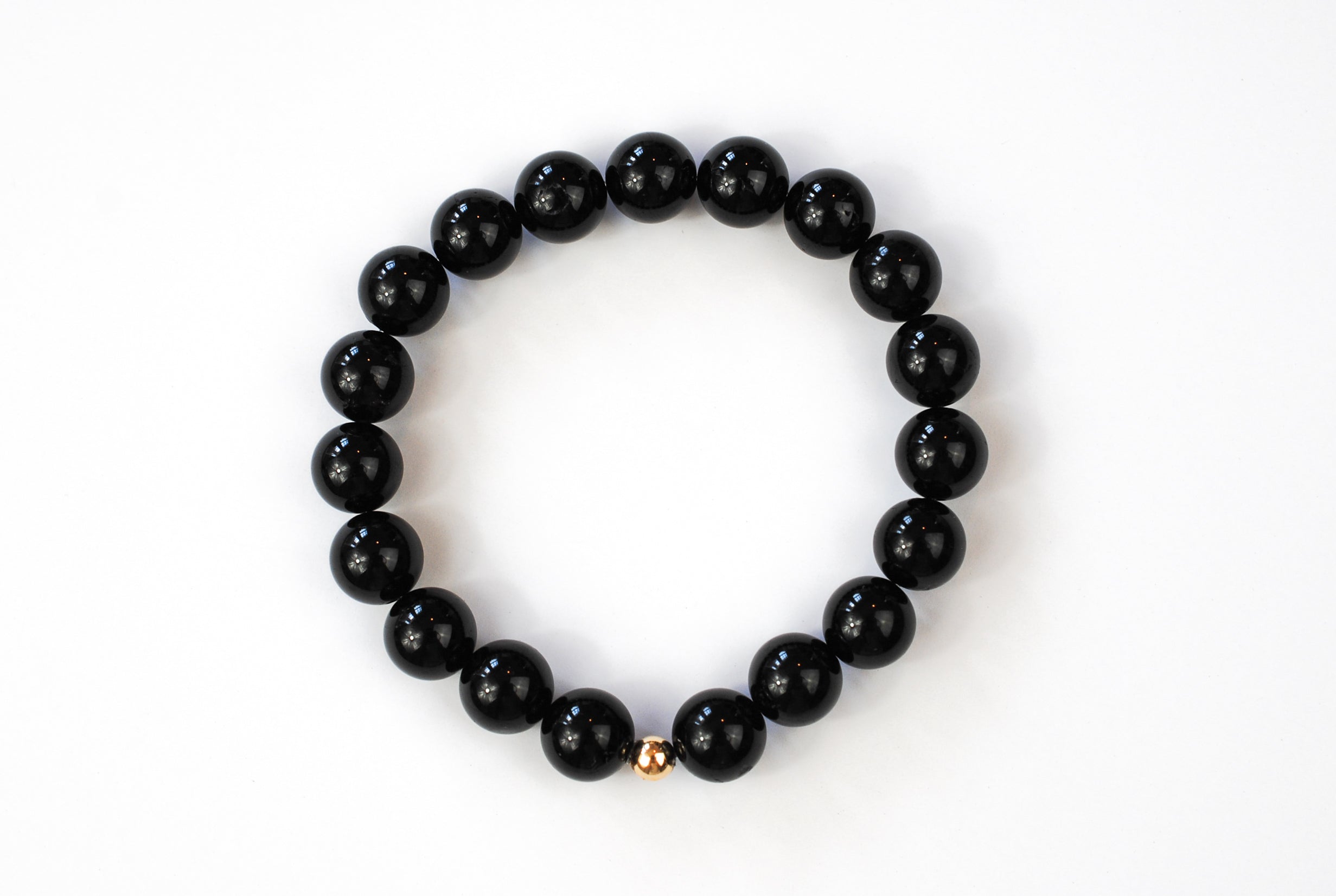 Details: 10mm beaded black onyx stones with 1 14K Gold Filled bead