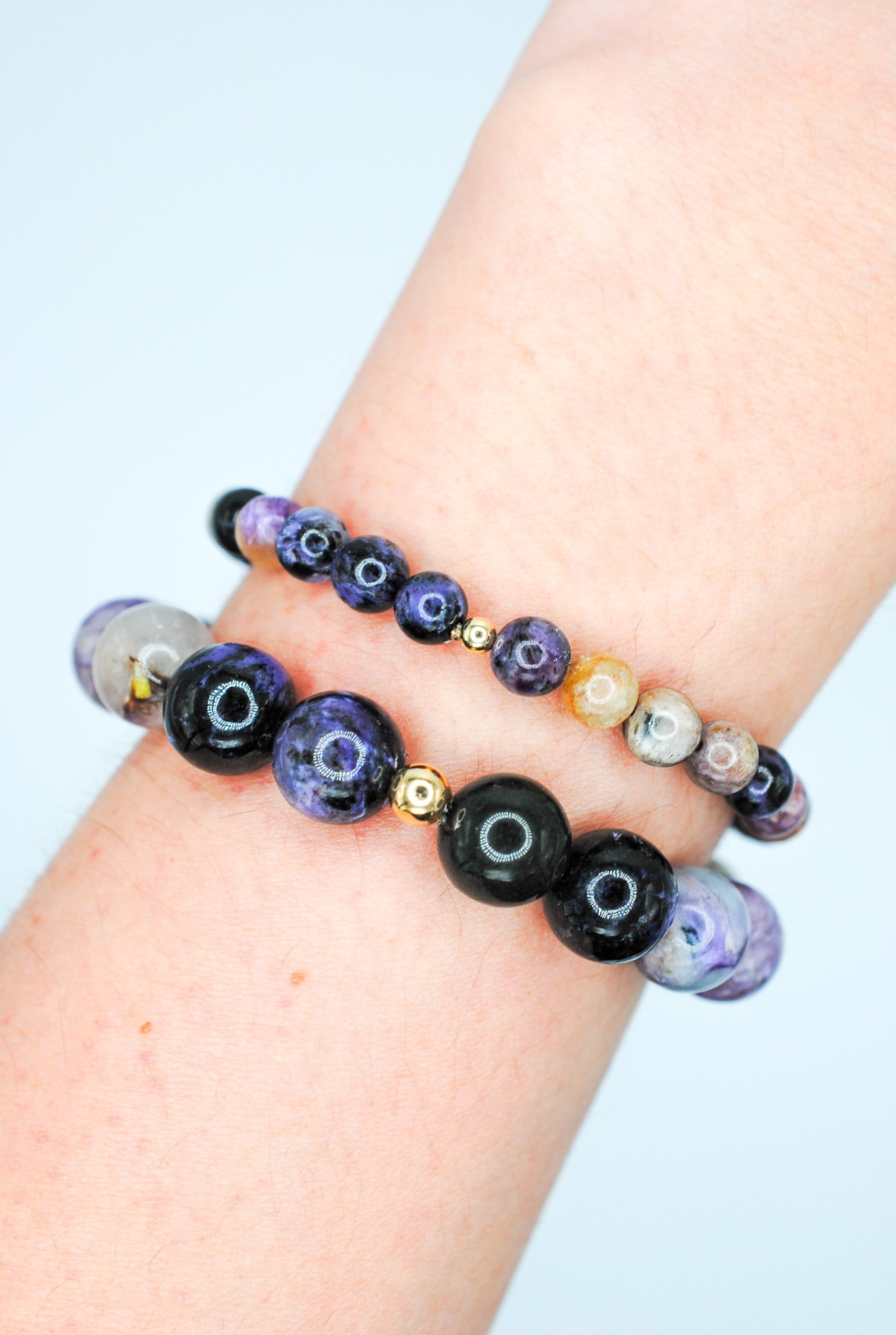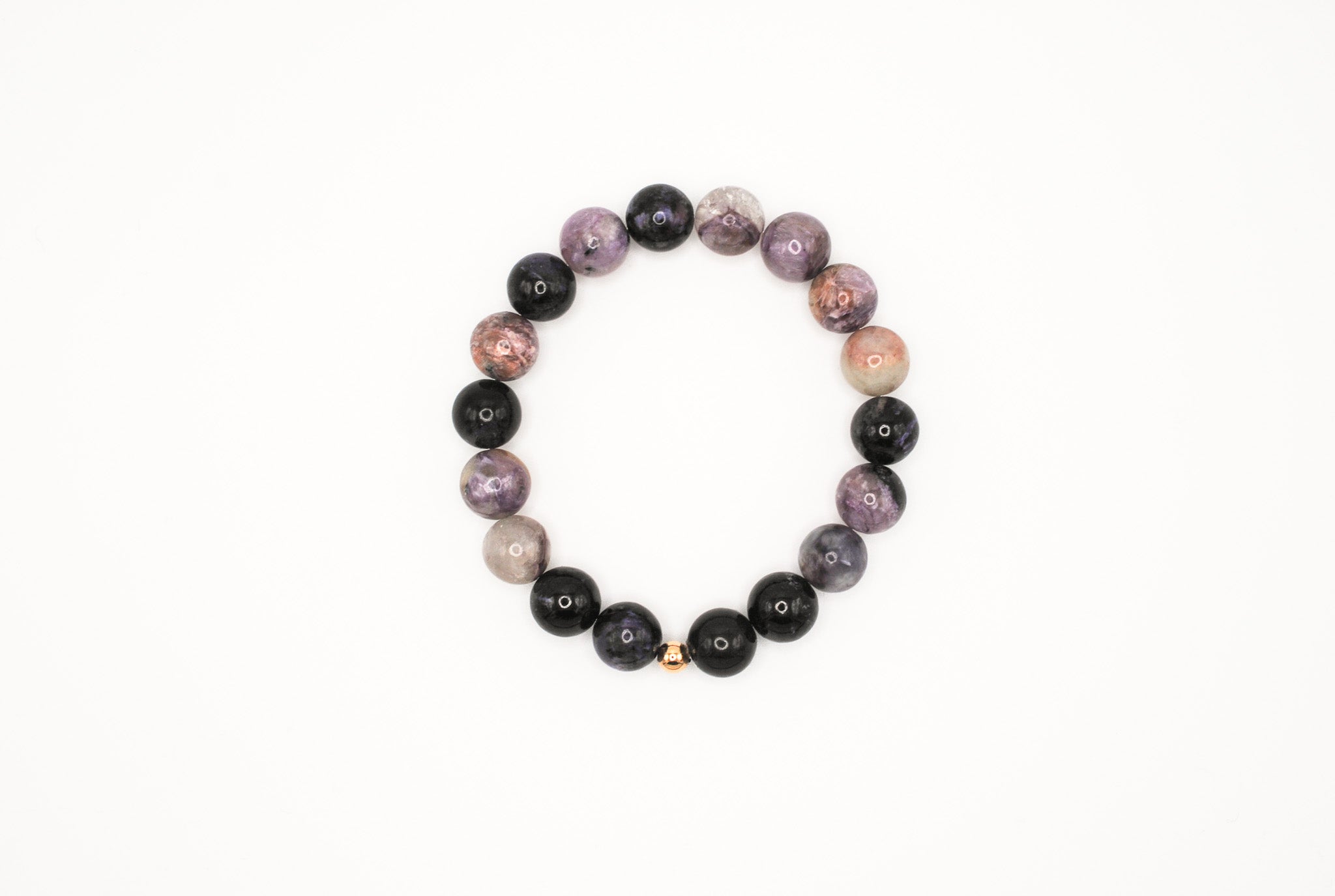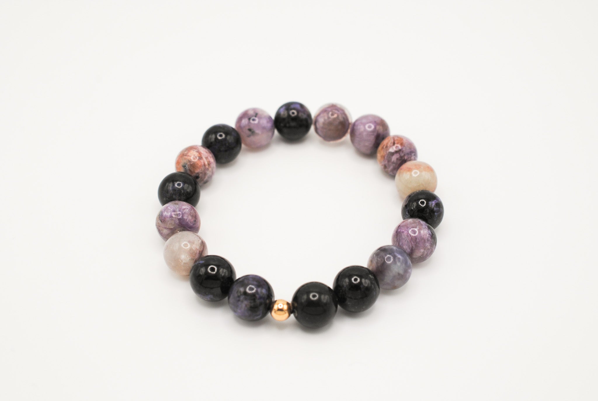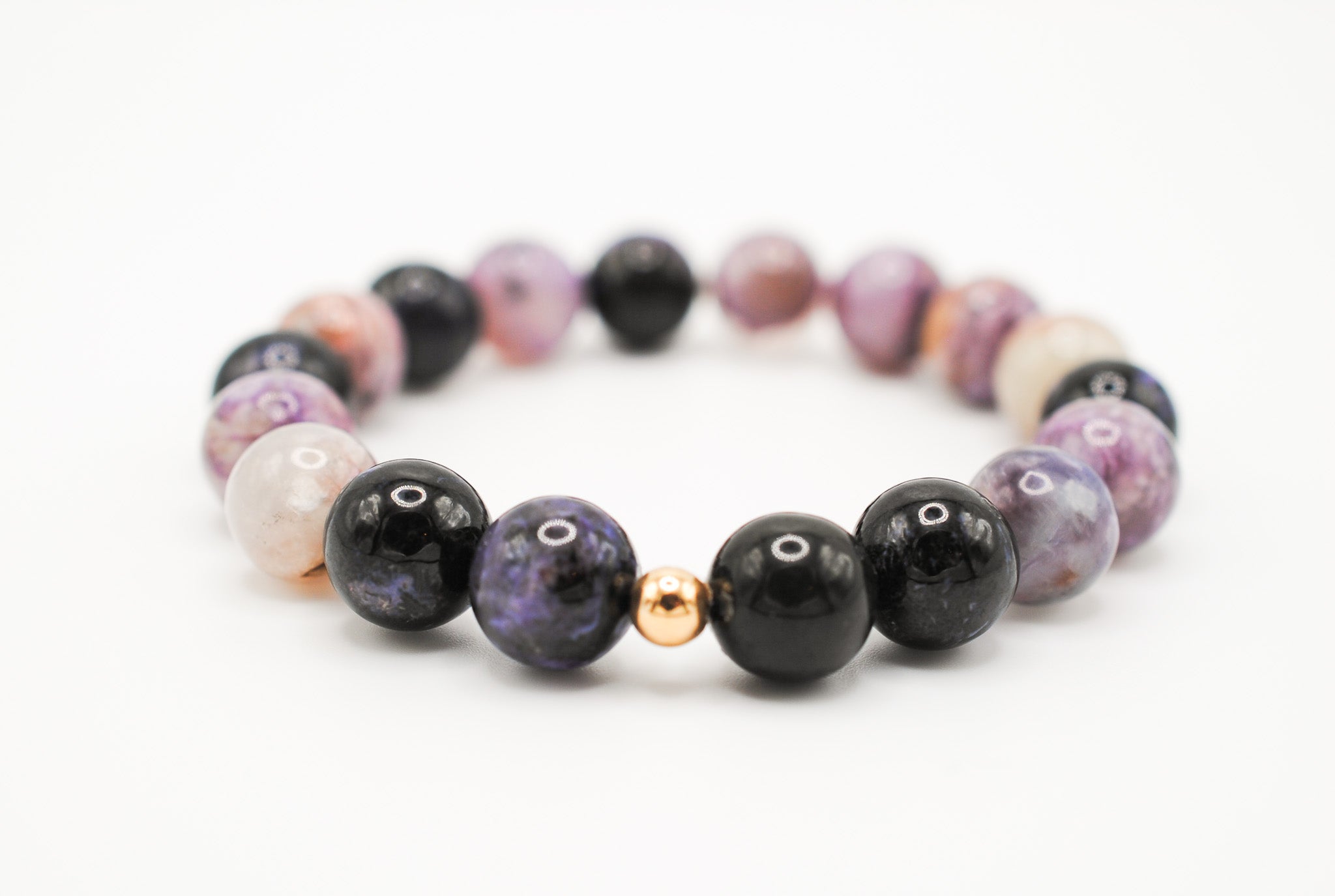 Details: 10mm beaded charoite with 1 14K Gold Filled bead