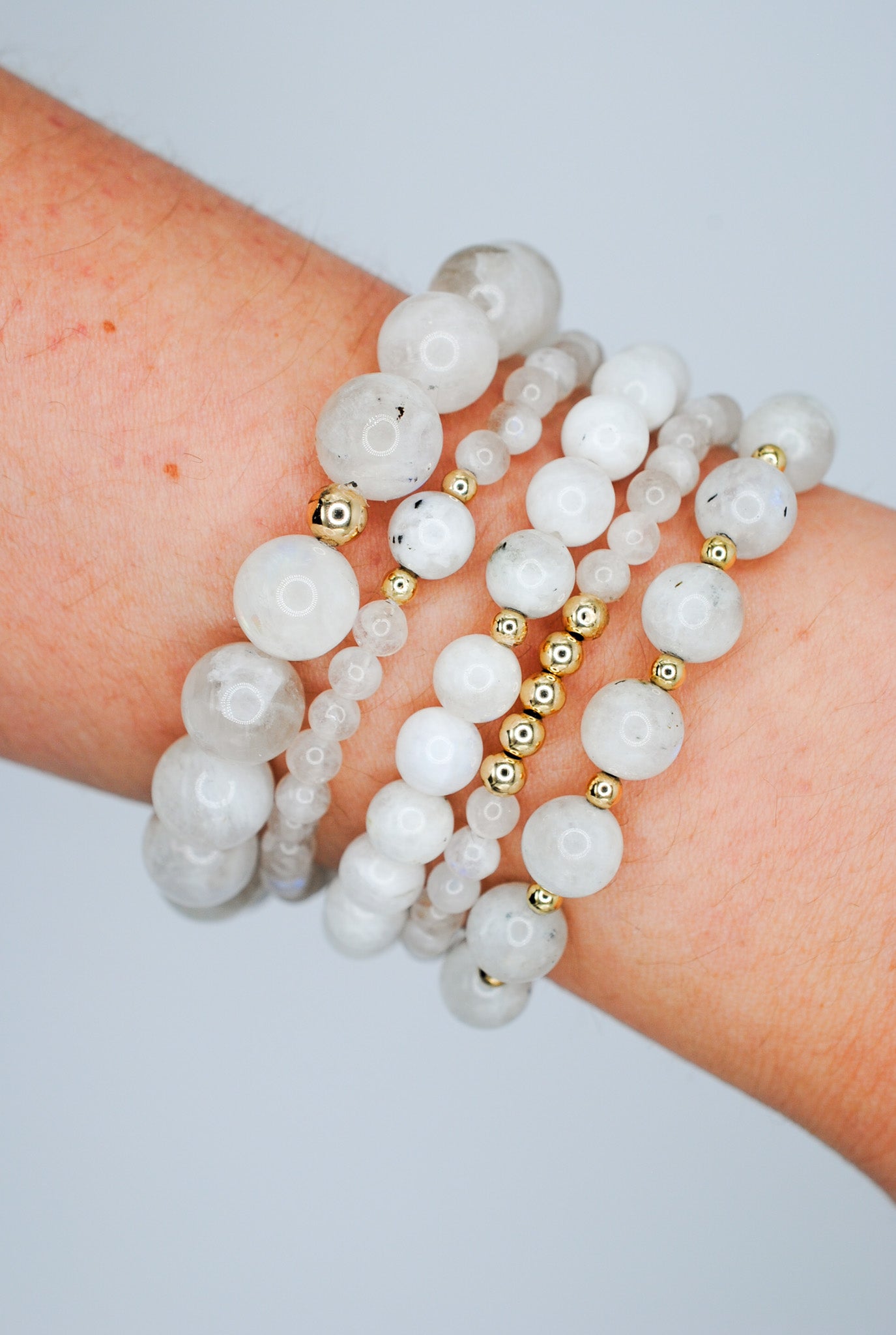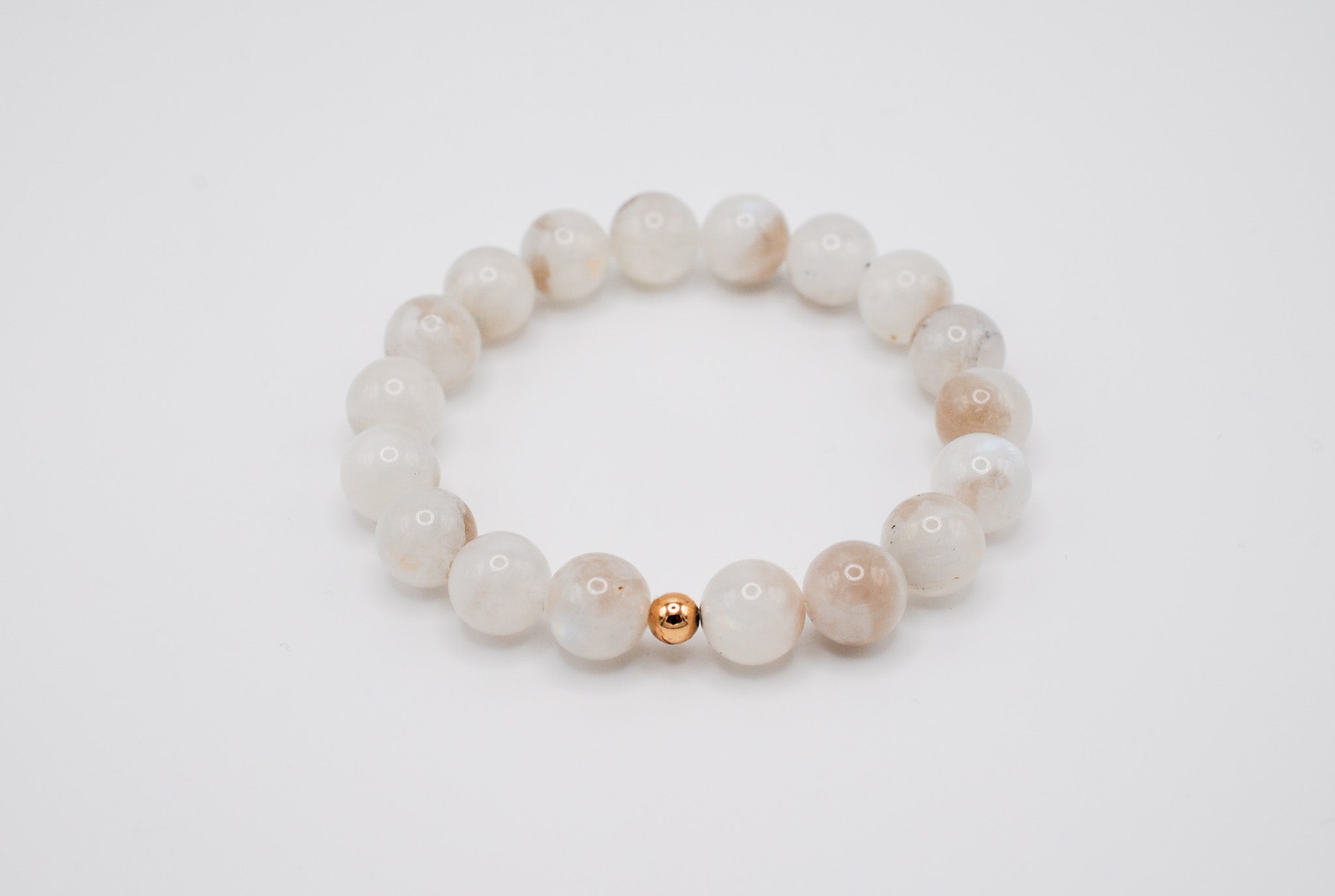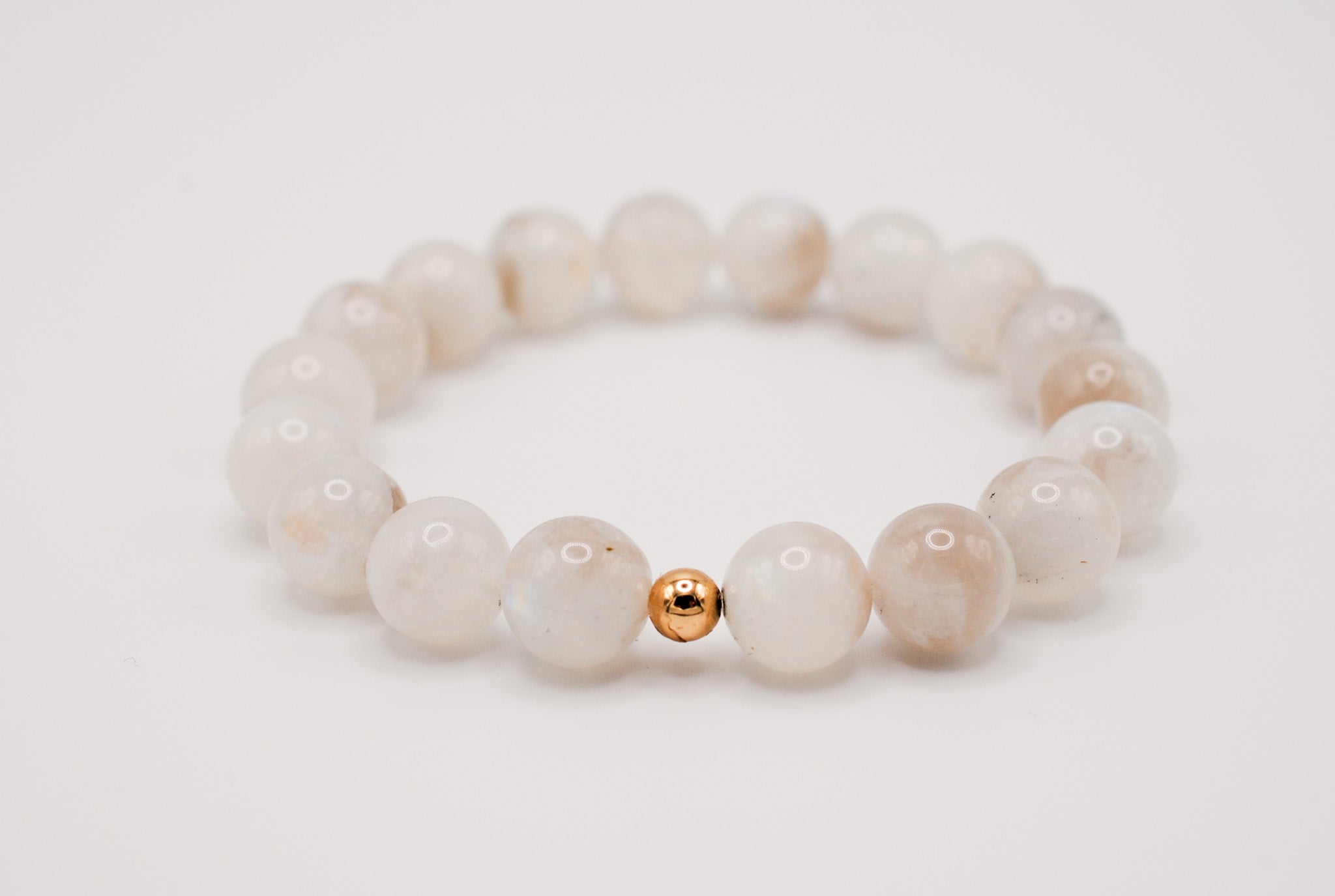 Details: 10mm beaded moonstones with 1 14K Gold Filled bead