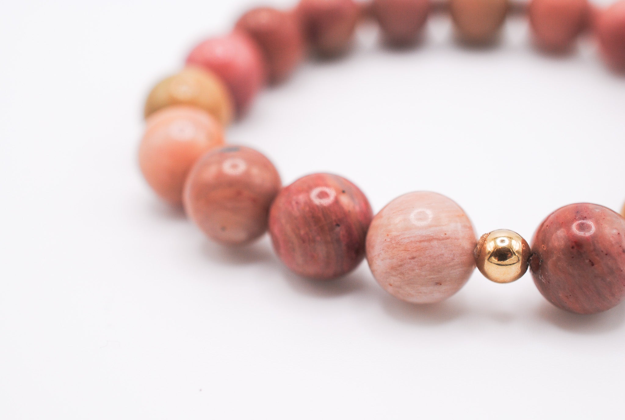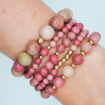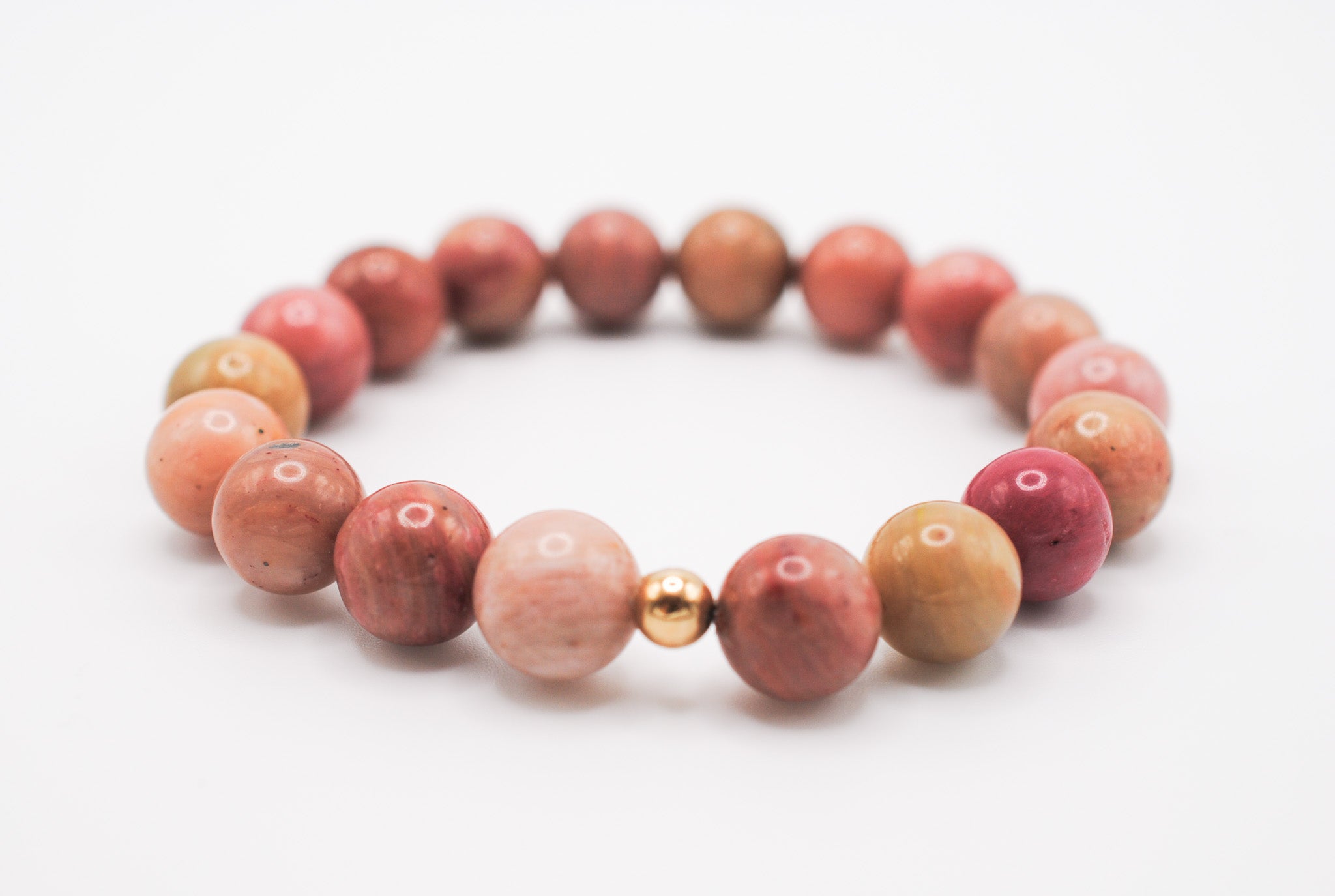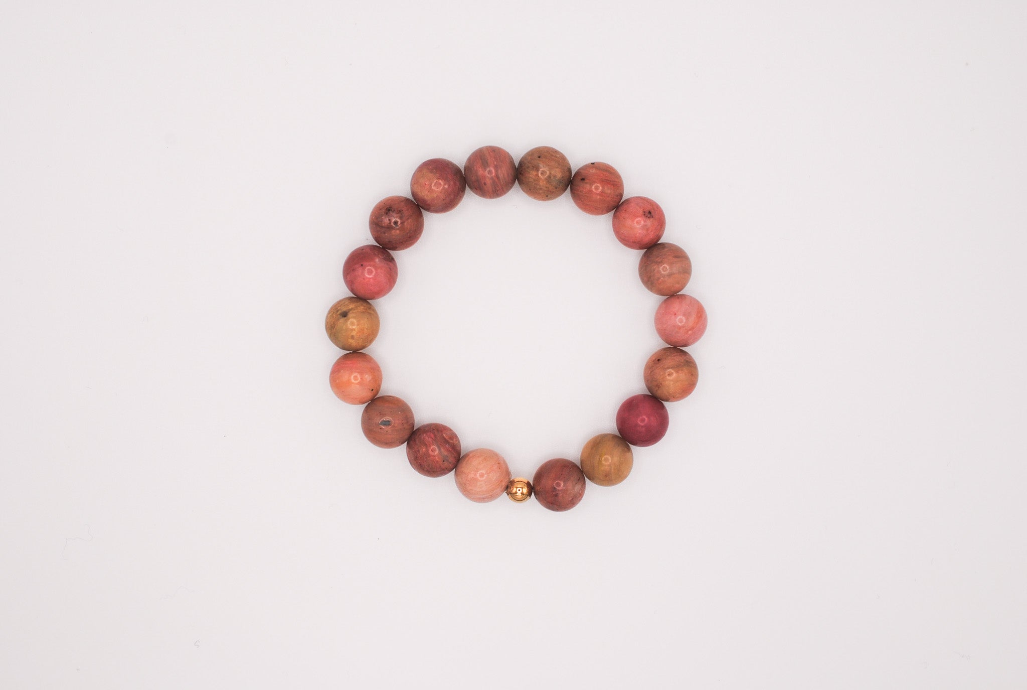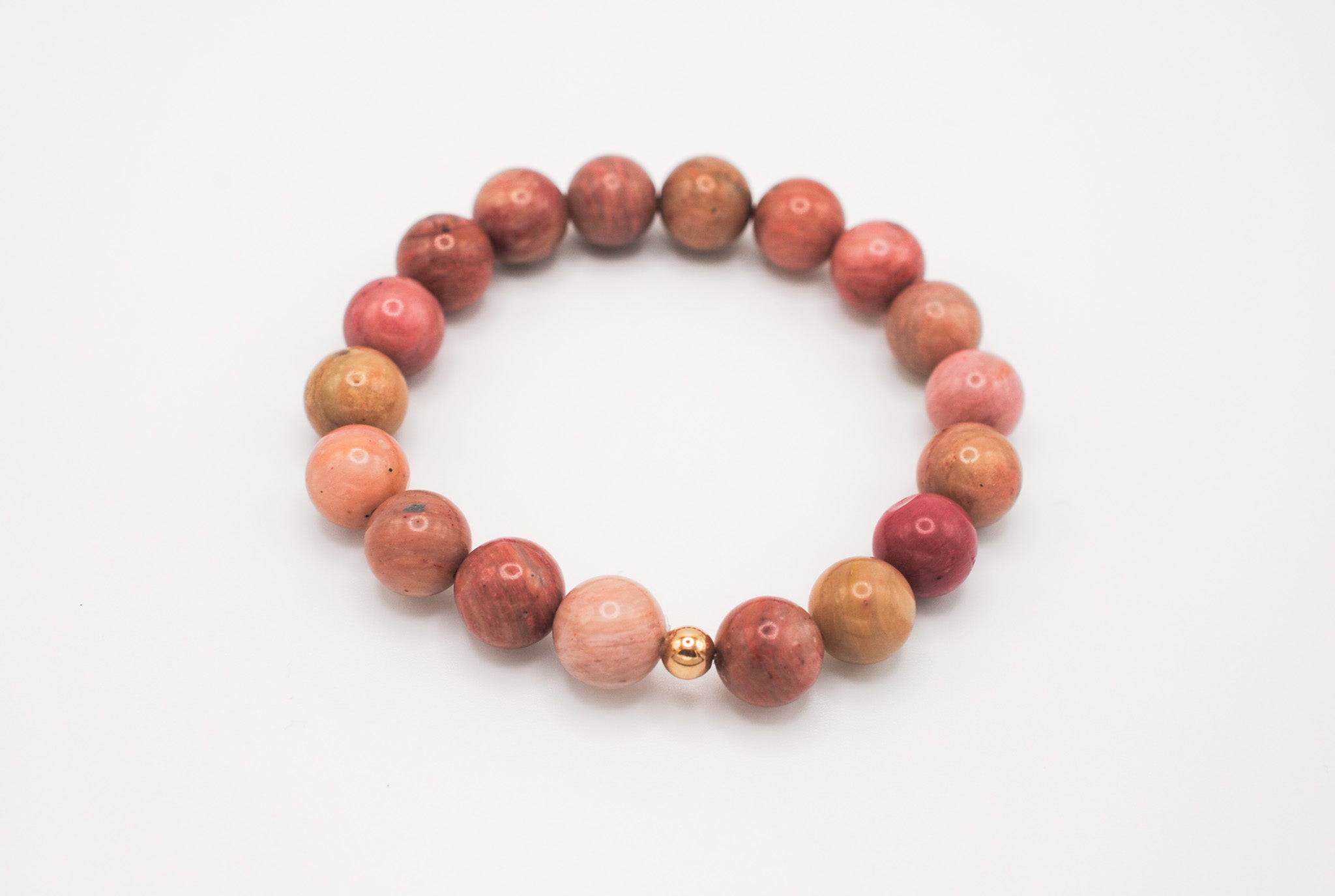Details: 10mm beaded rhodonite stones with 1 14K Gold Filled bead