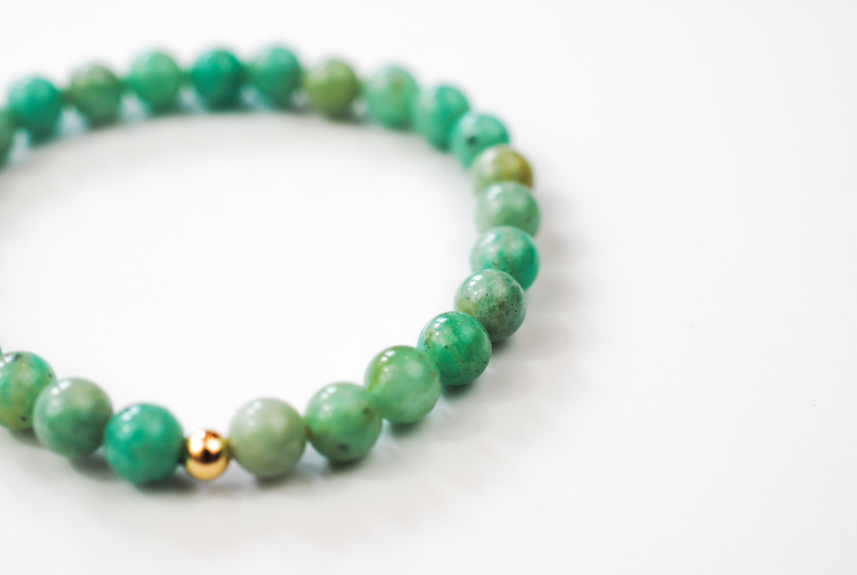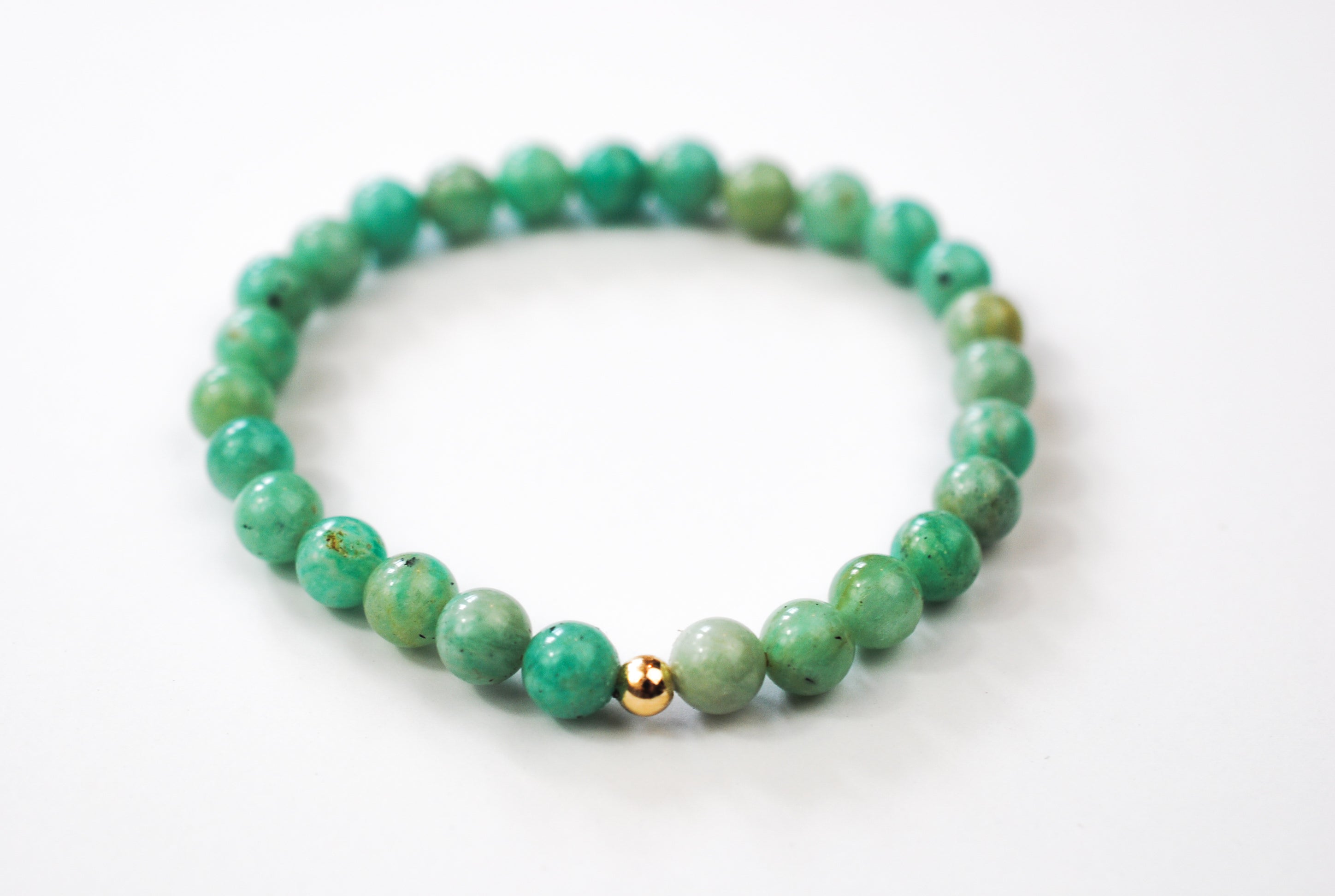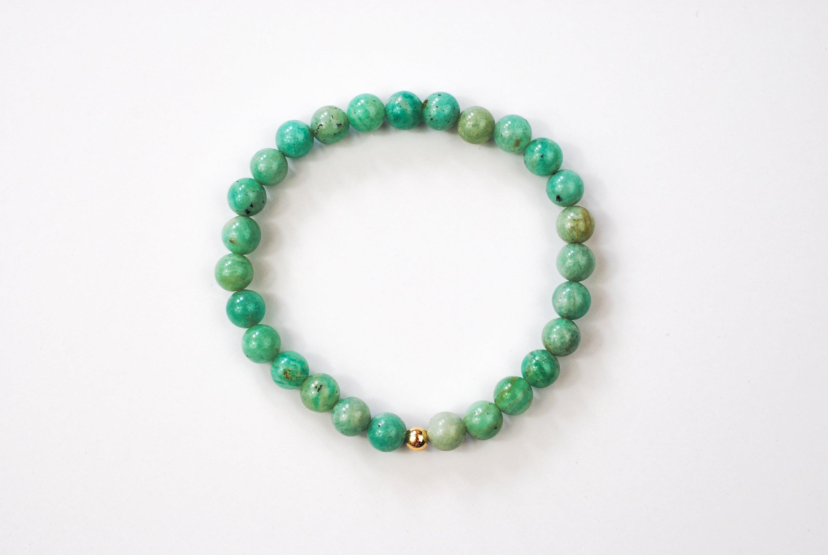 Details: 6mm beaded amazonite stones with 1 14K Gold Filled bead