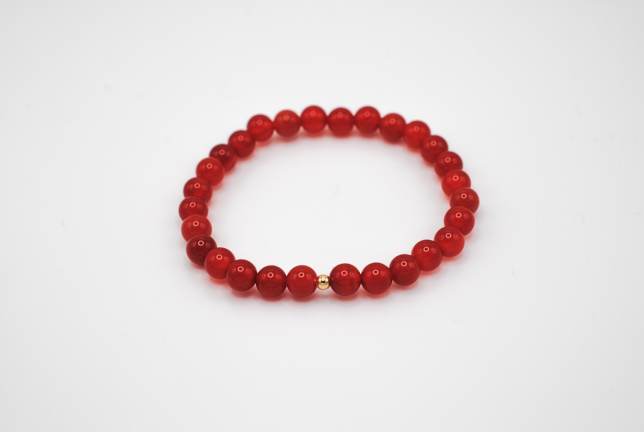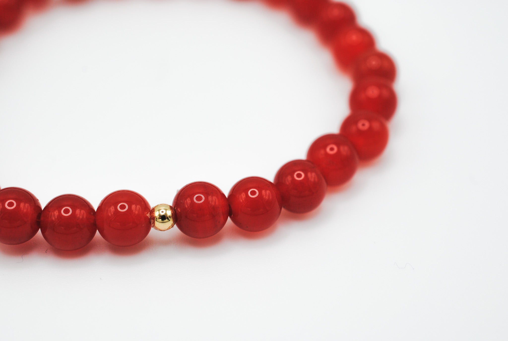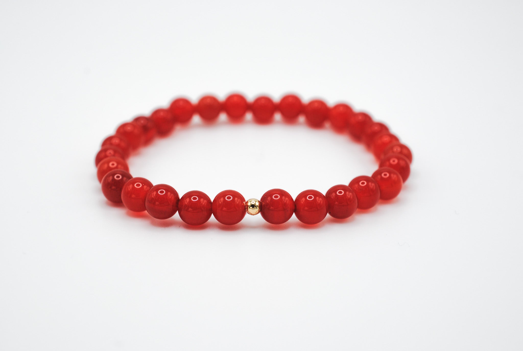 Details: 6mm beaded carnelian stones with 1 14K Gold Filled bead
