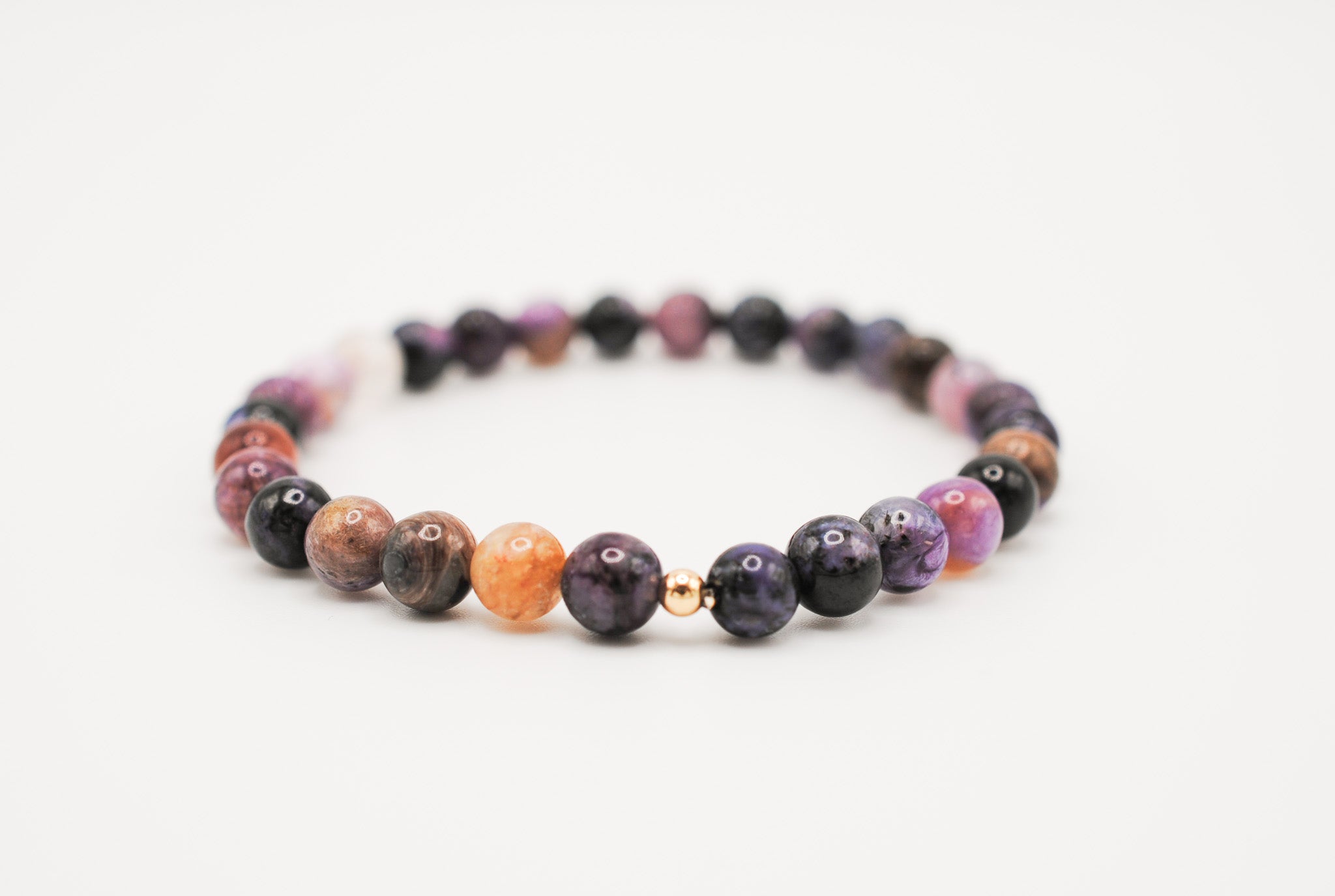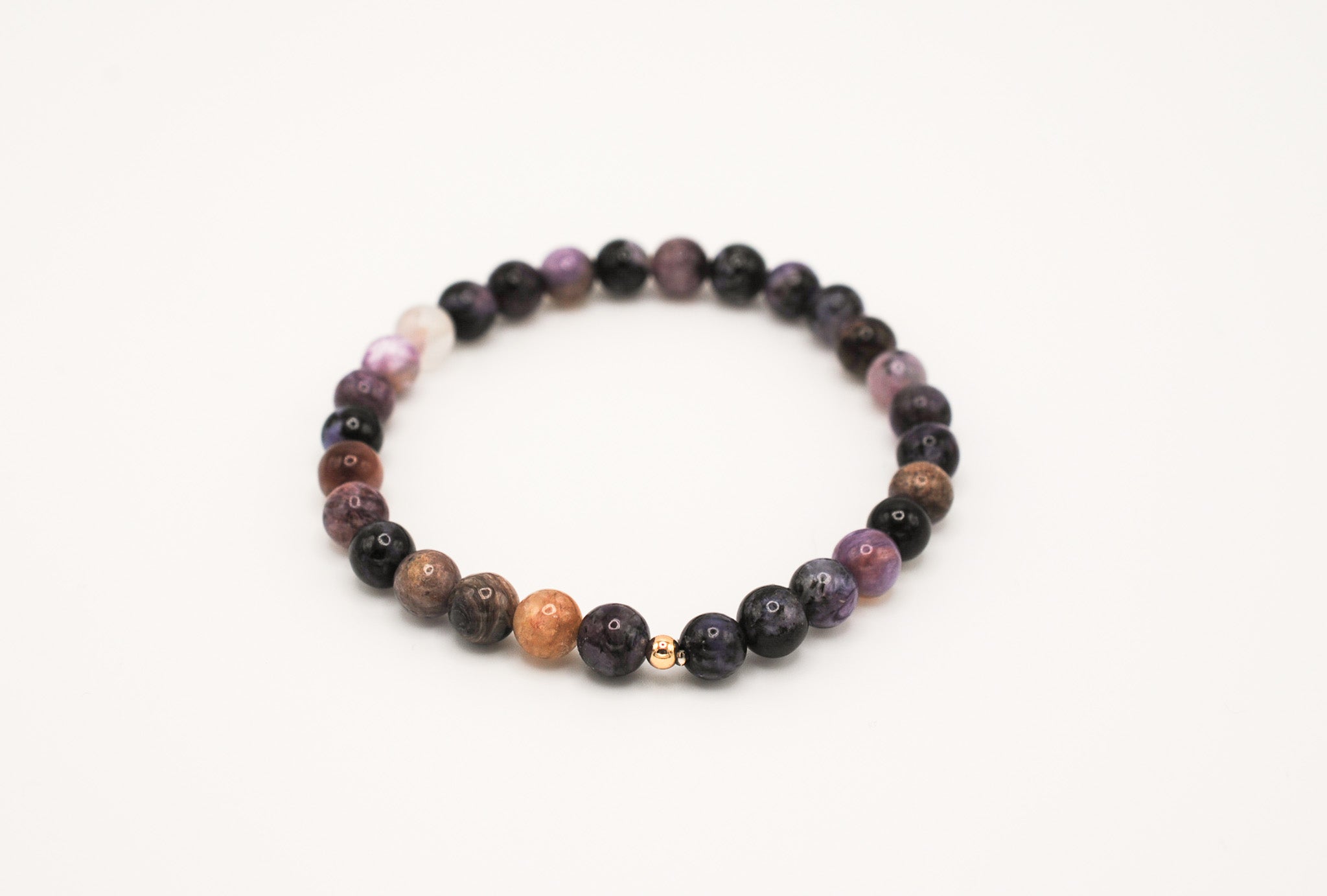 Details: 6mm beaded charoite with 1 14K Gold Filled bead