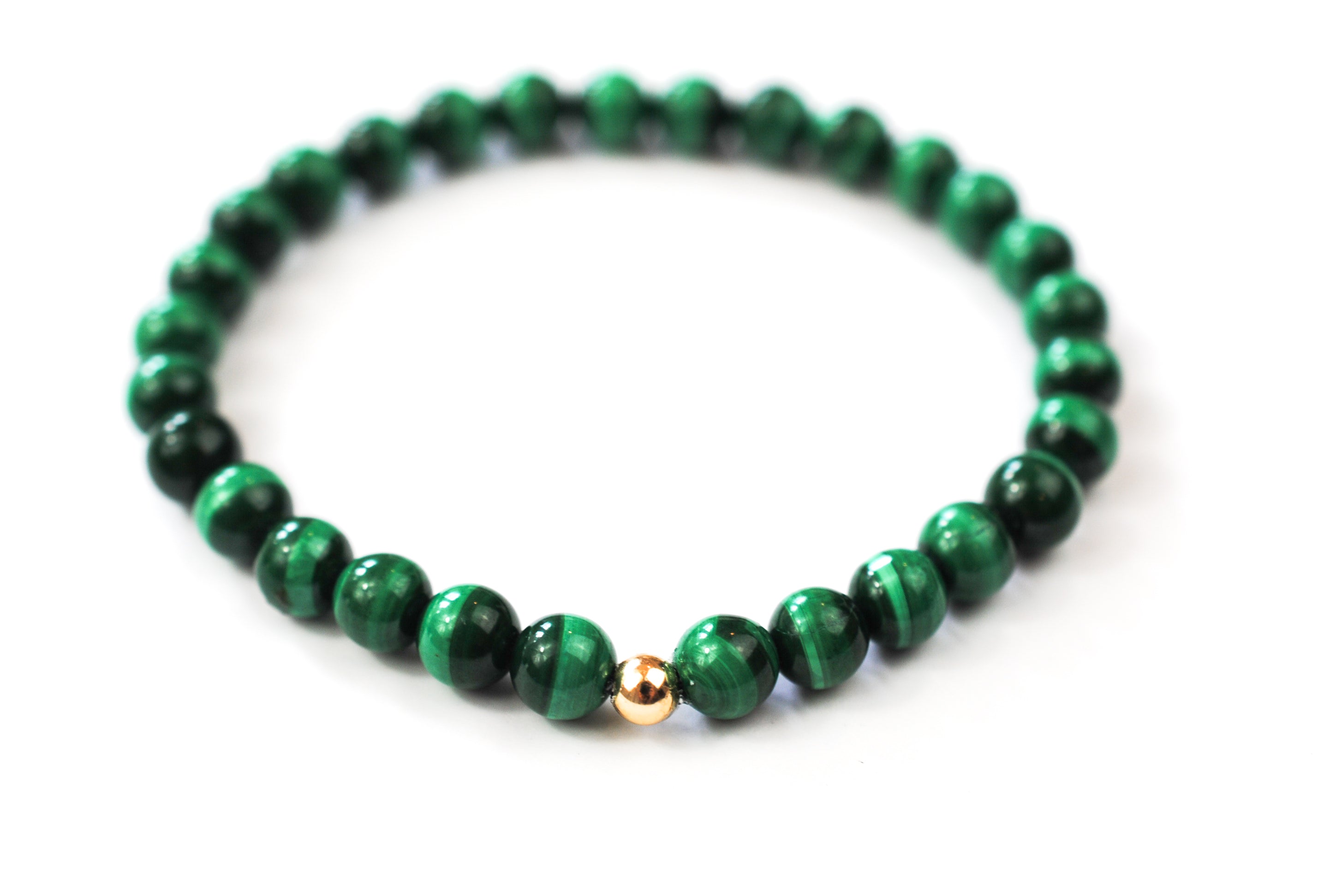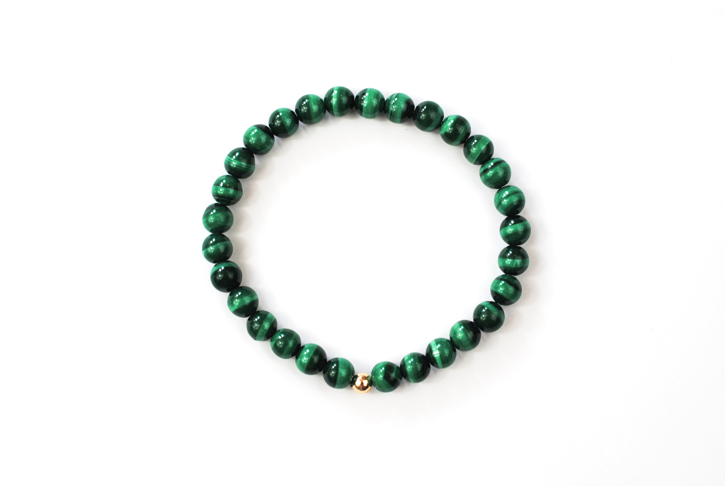 Details: 6mm beaded malachite stones with 1 14K Gold Filled bead