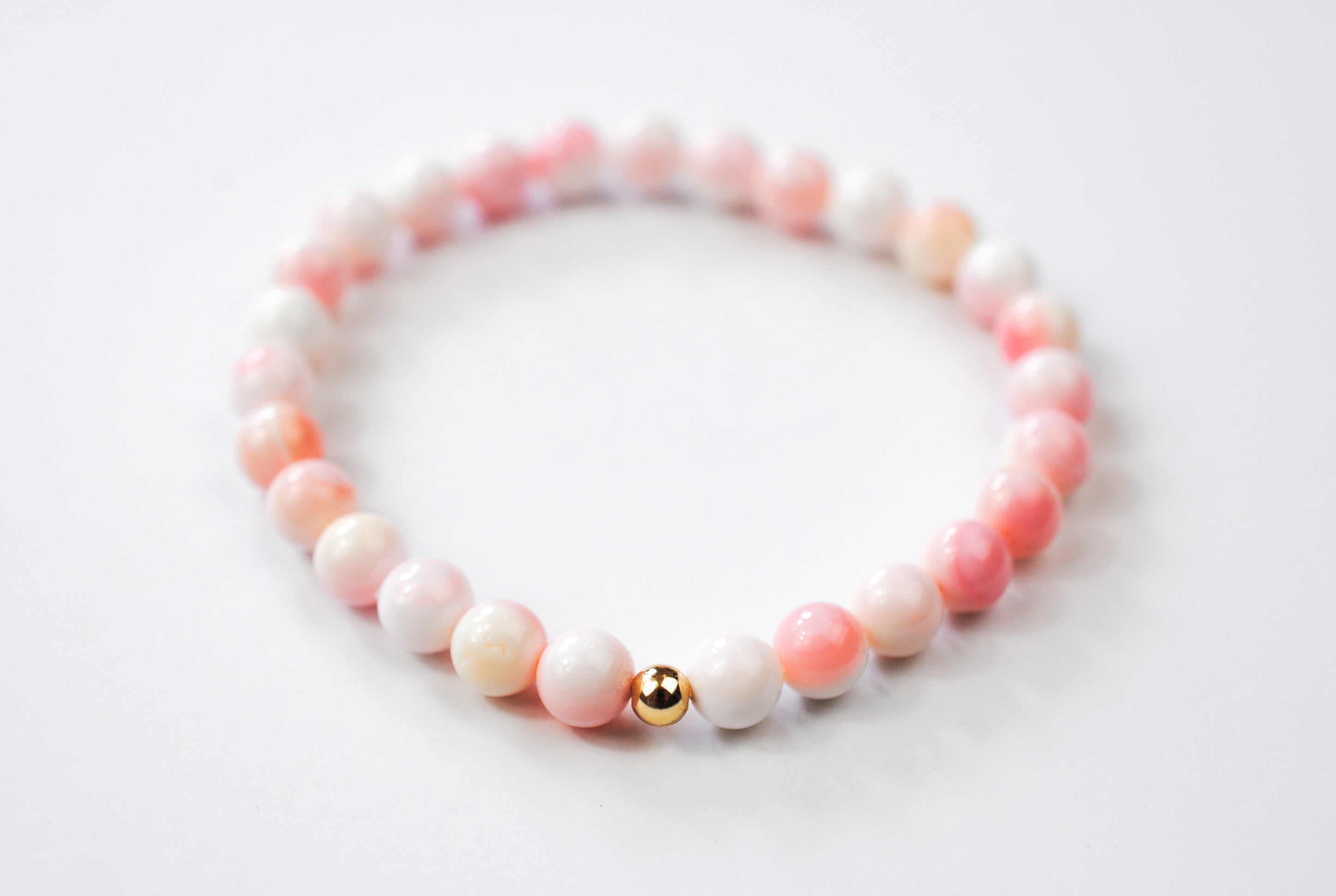 Details: 6mm beaded queen conch shell stones with 1 14K Gold Filled bead
