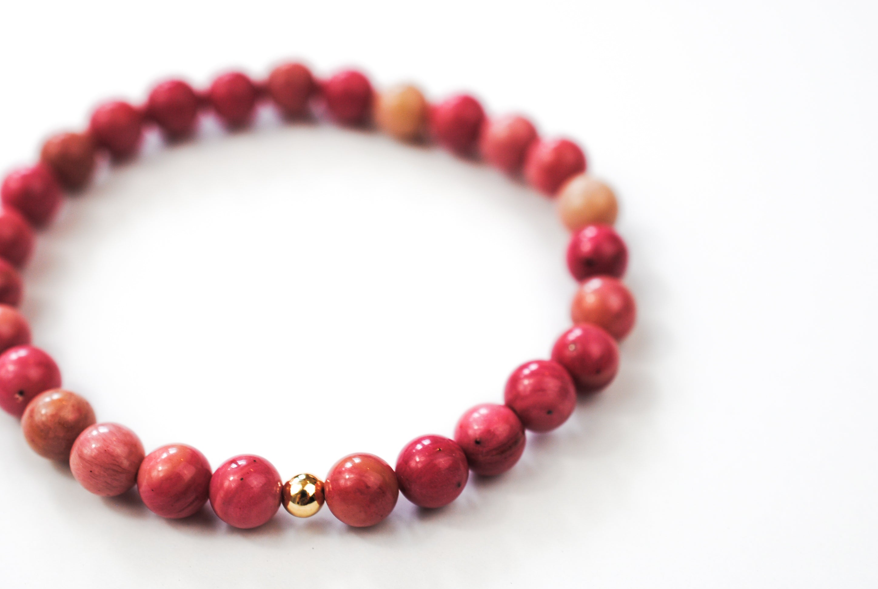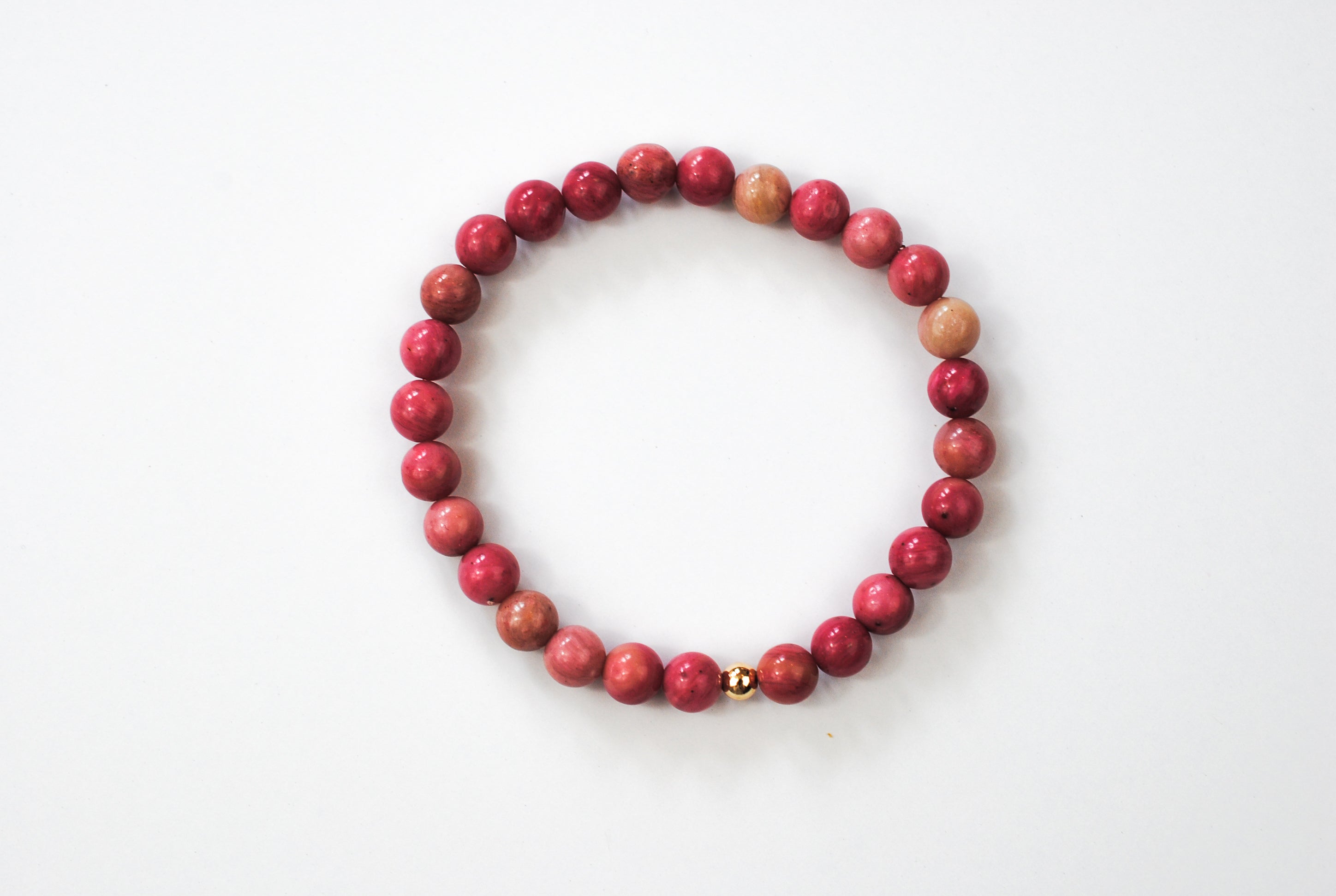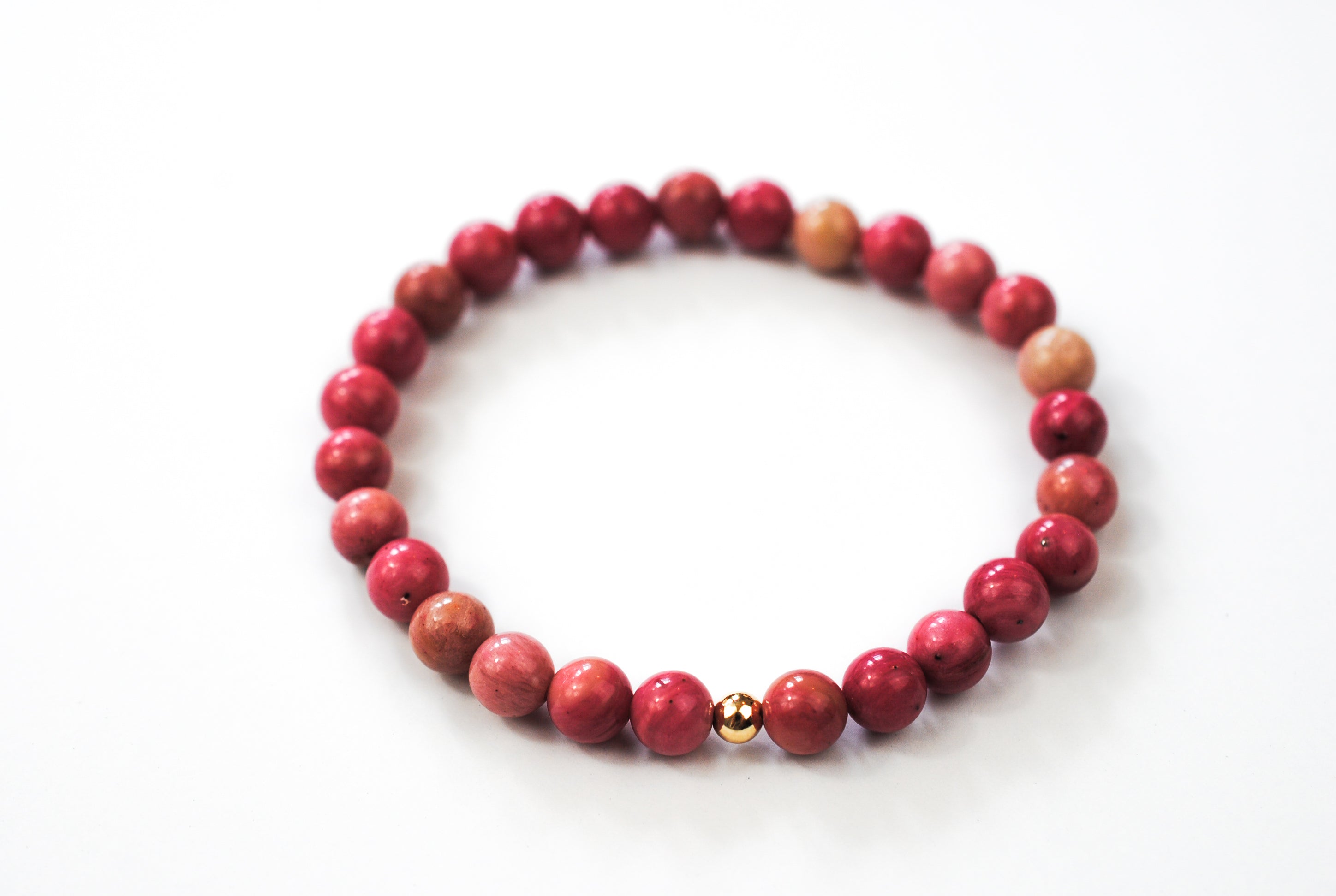 Details: 6mm beaded rhodonite stones with 1 14K Gold Filled bead