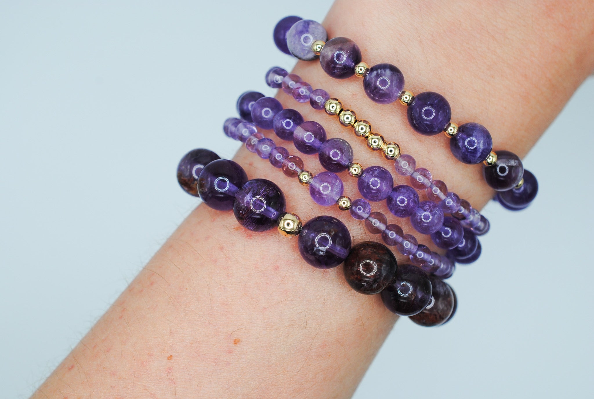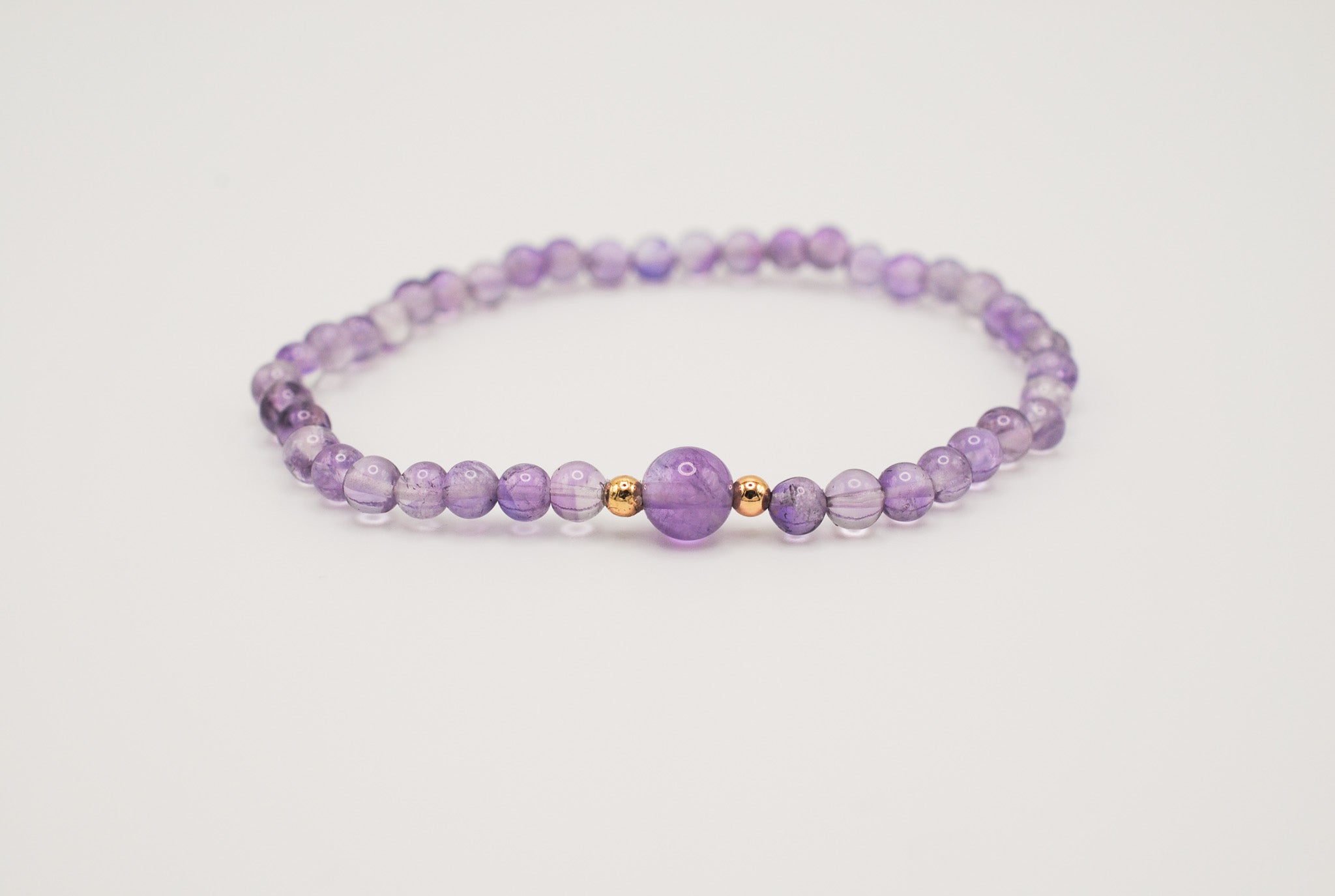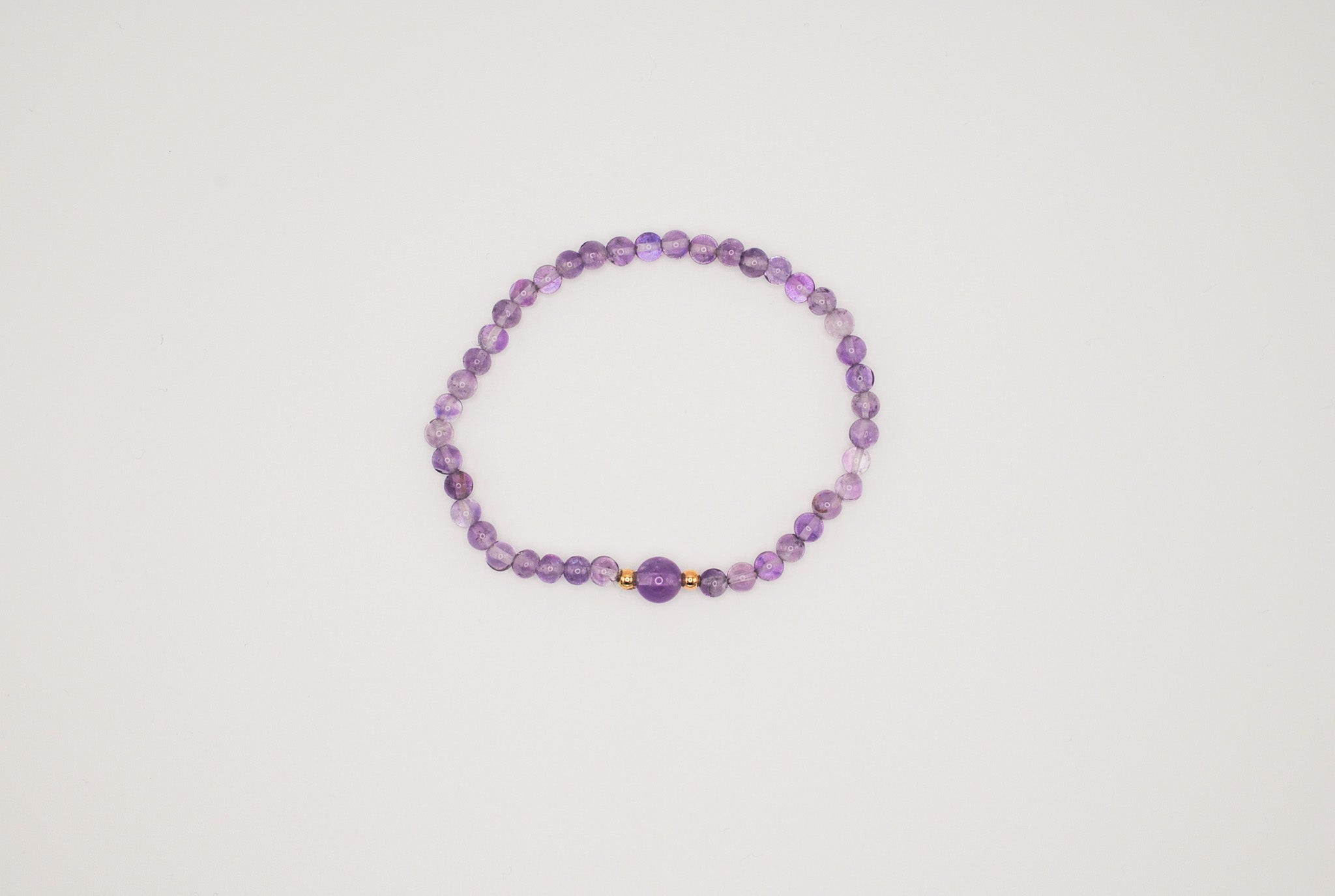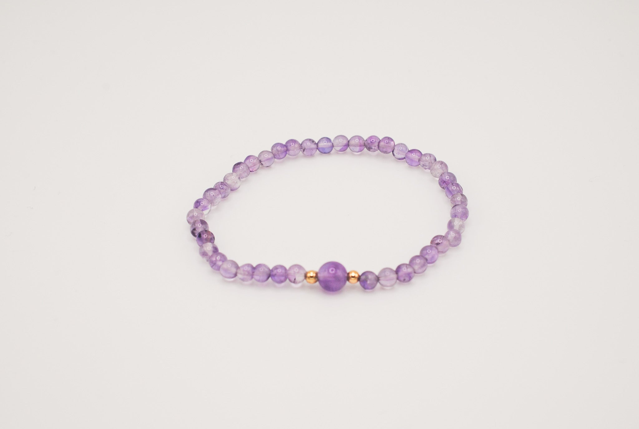 Details: 4mm beaded amethyst with (1) 6mm beaded amethyst and (2) 14K Gold Filled beads