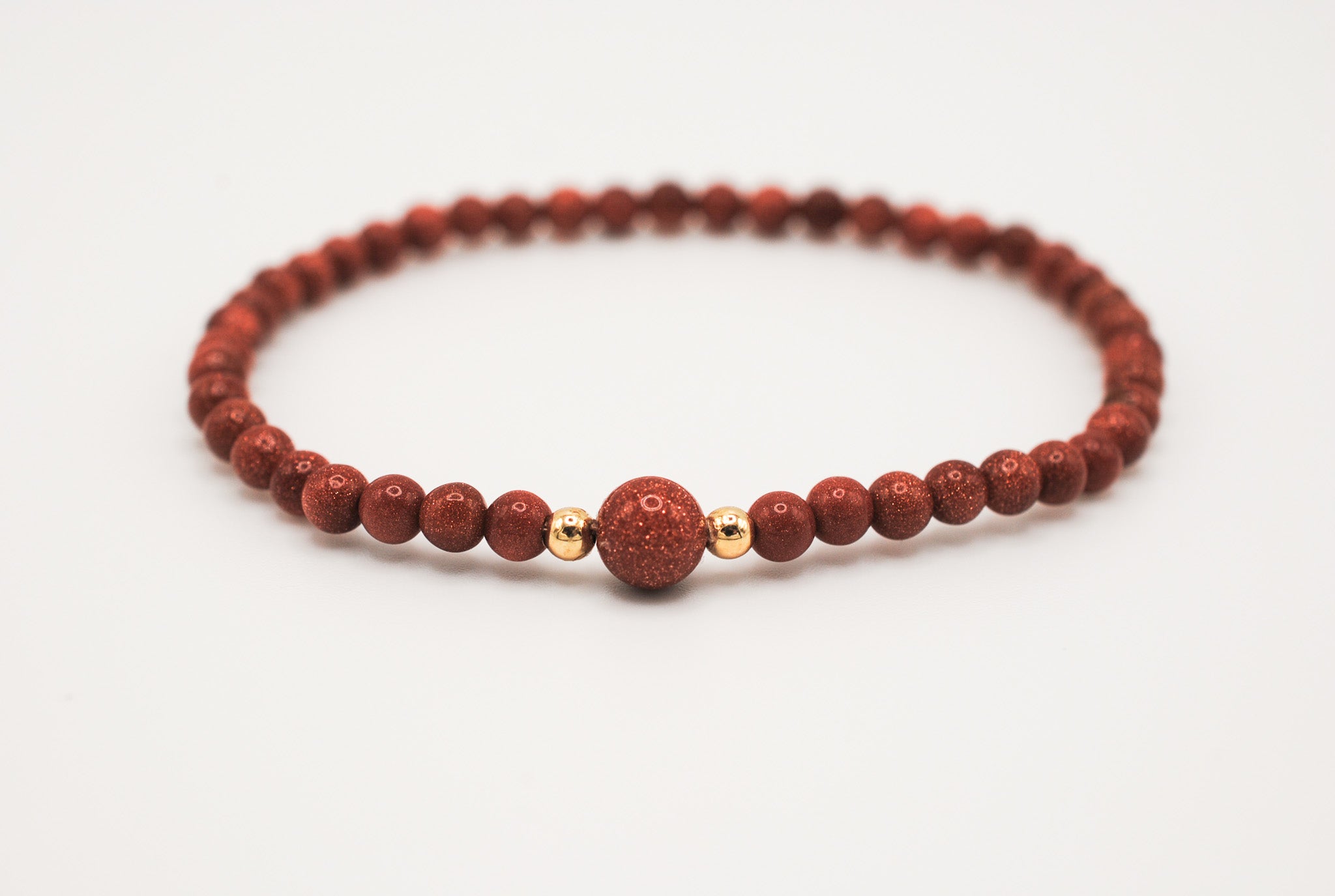 Details: 4mm beaded goldstones with (1) 6mm beaded goldstone and (2) 14K Gold Filled beads
