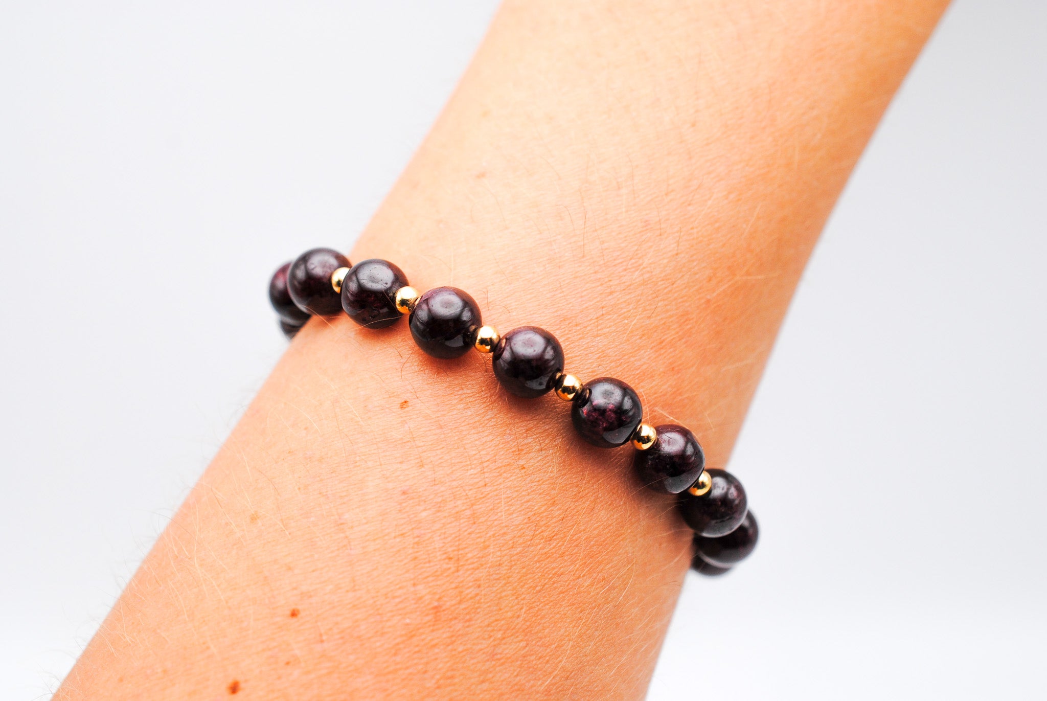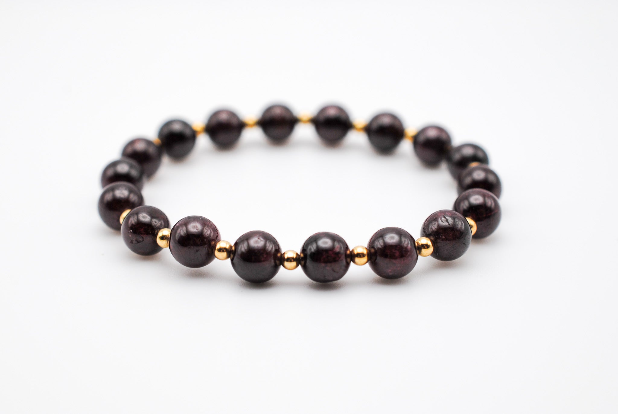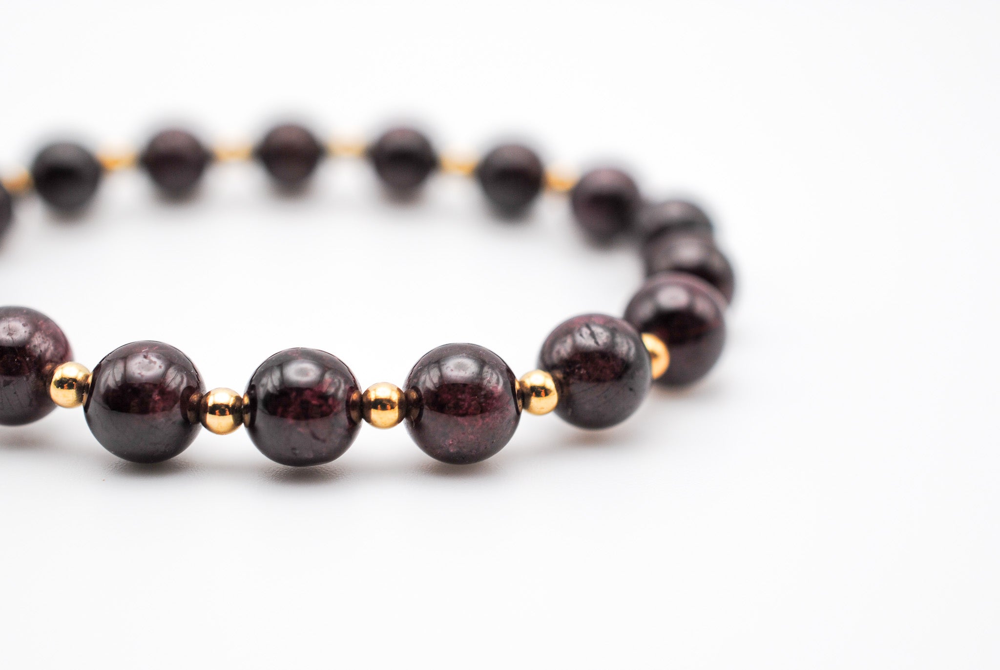 Details: Alternating 8mm garnet and 14K Gold Filled beads