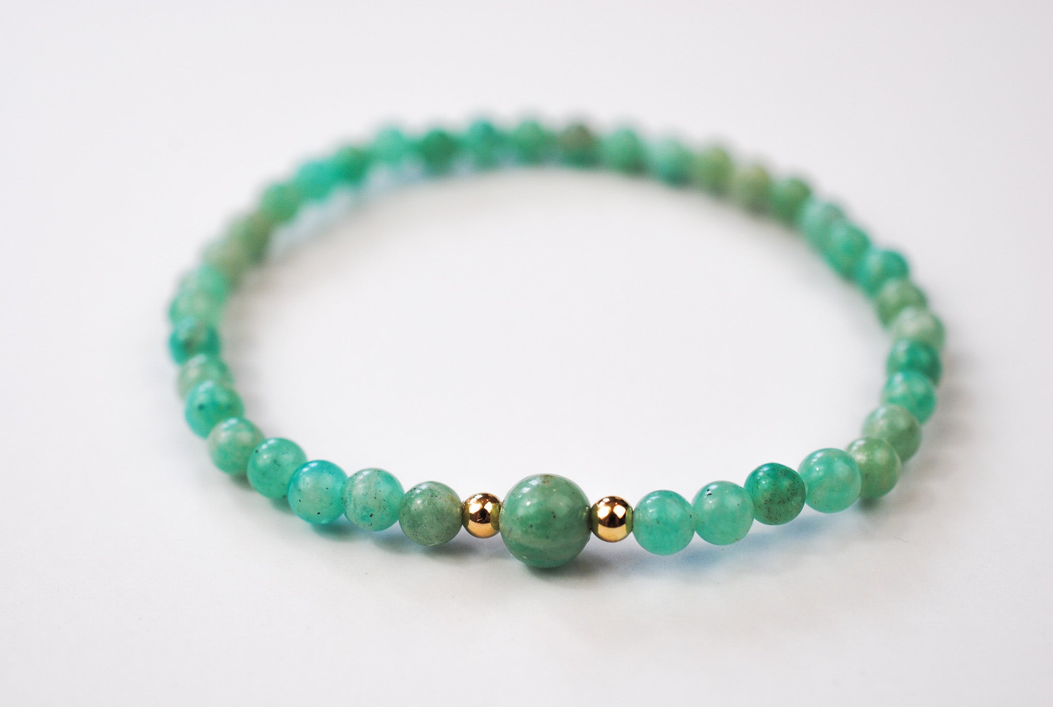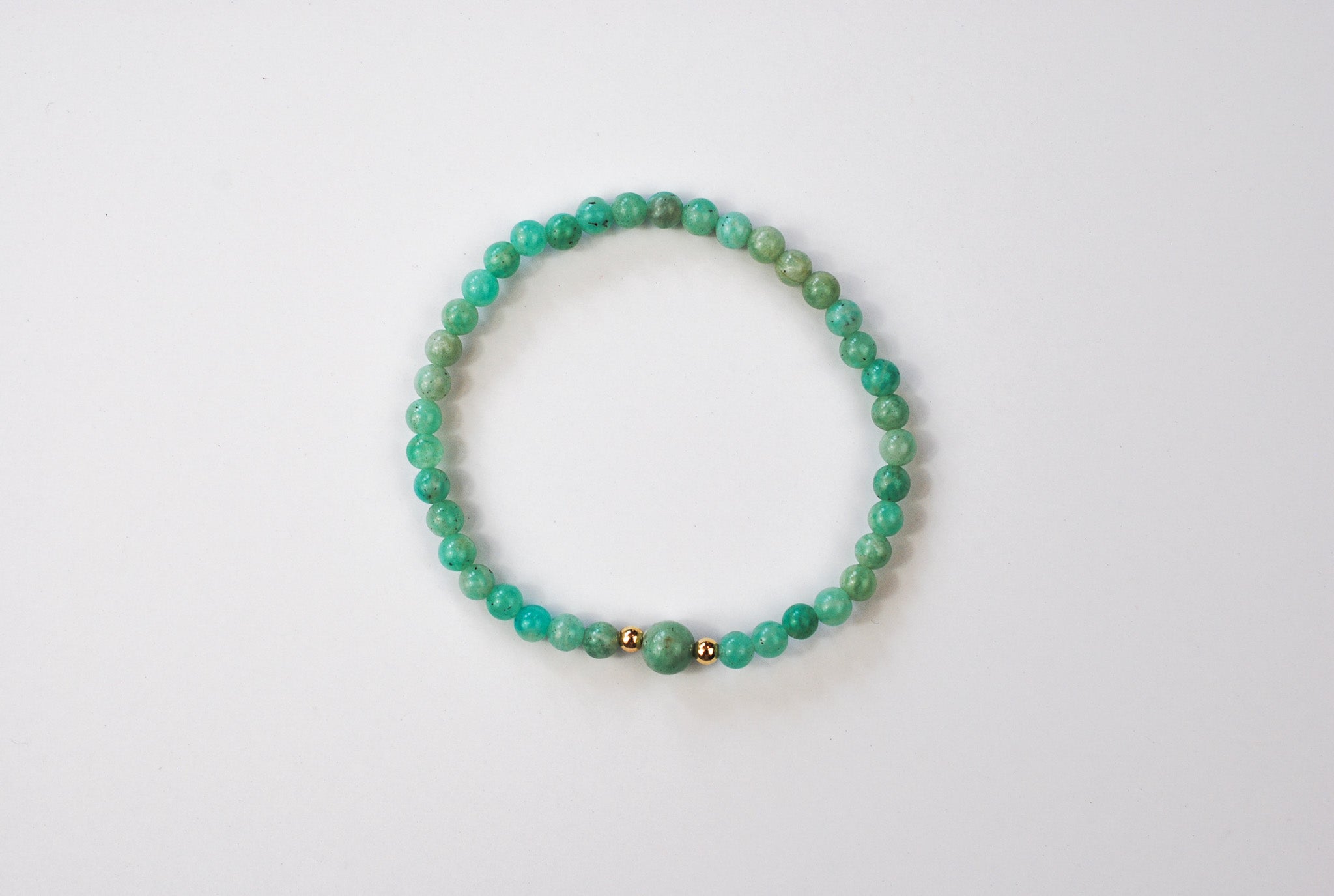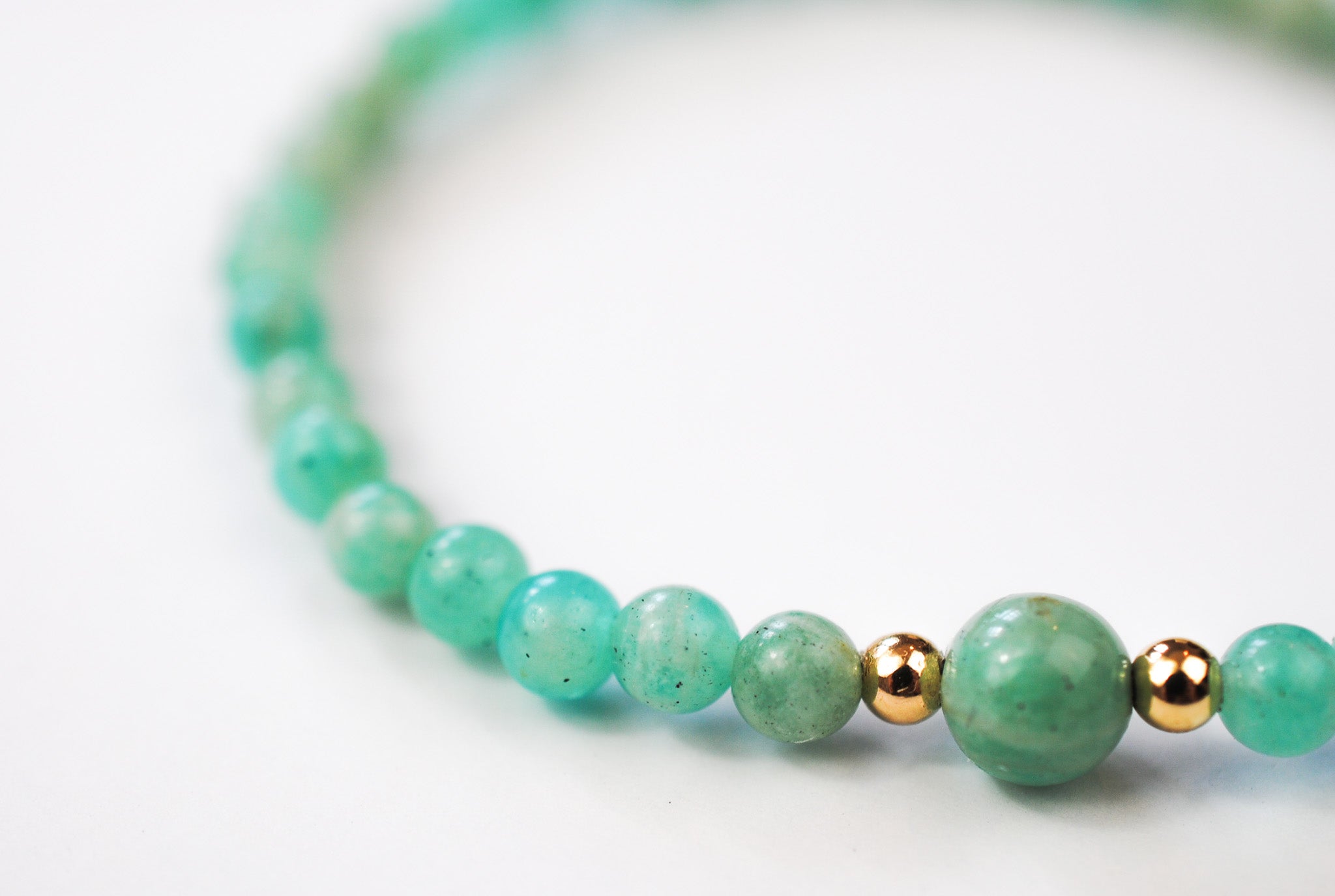 Details: 4mm beaded amazonite gemstones with (1) 6mm beaded amazonite gemstone and (2) 14K Gold Filled beads