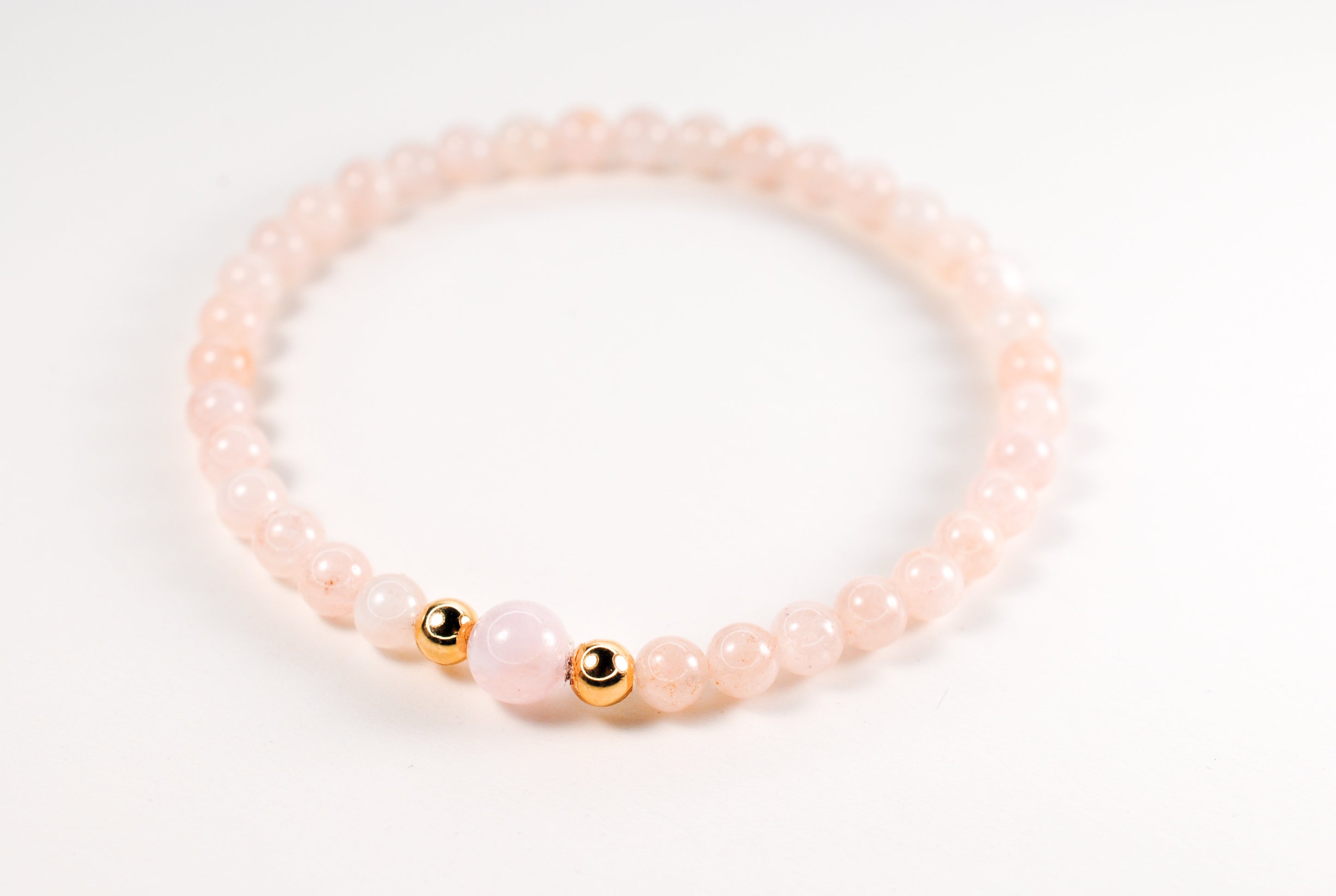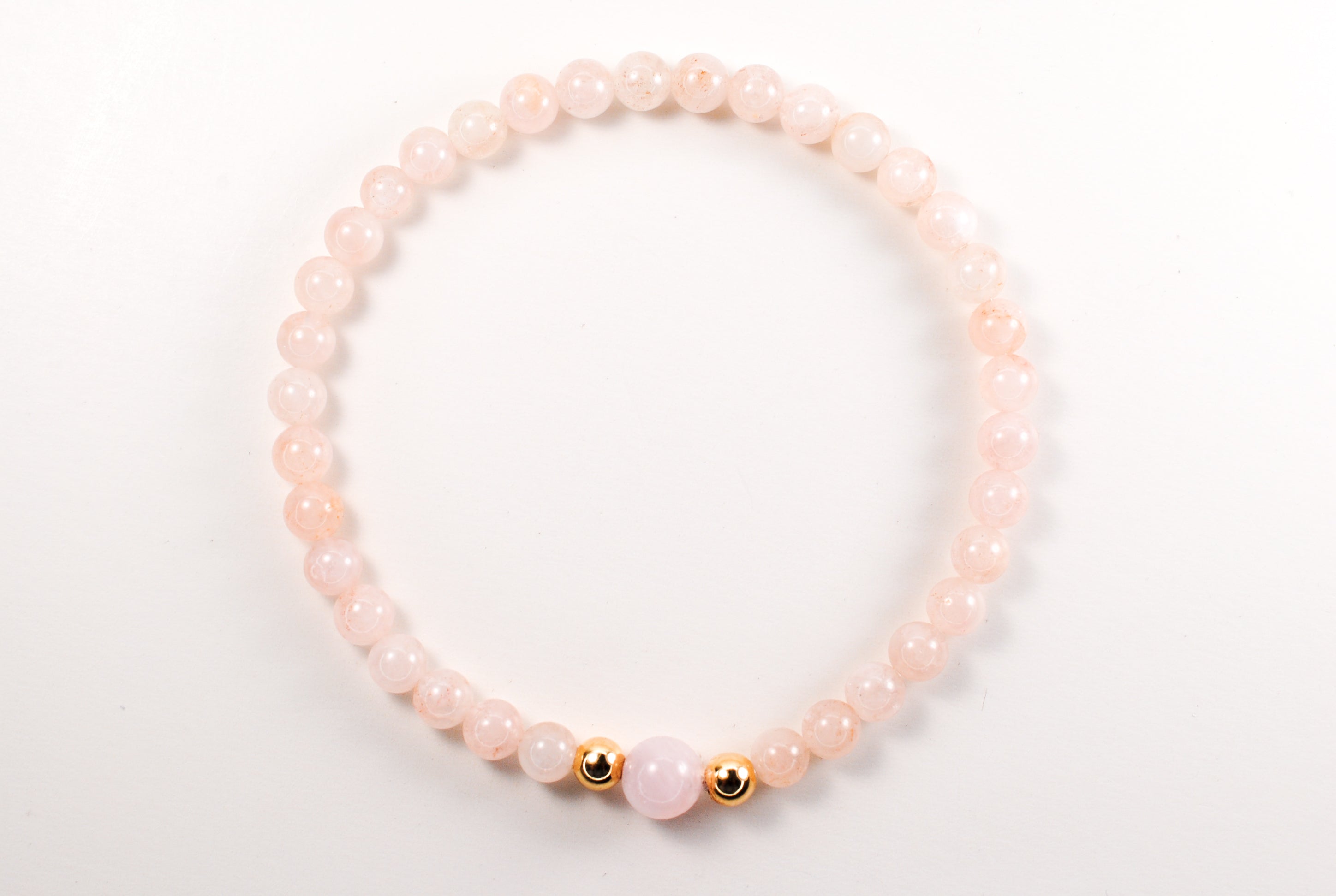 Details: 4mm beaded morganite gemstones with (1) 6mm beaded morganite gemstone and (2) 14K Gold Filled beads