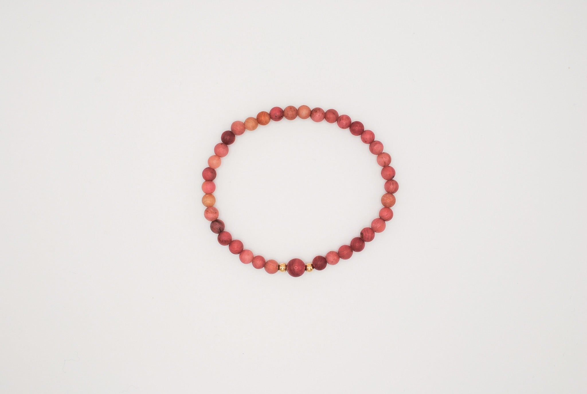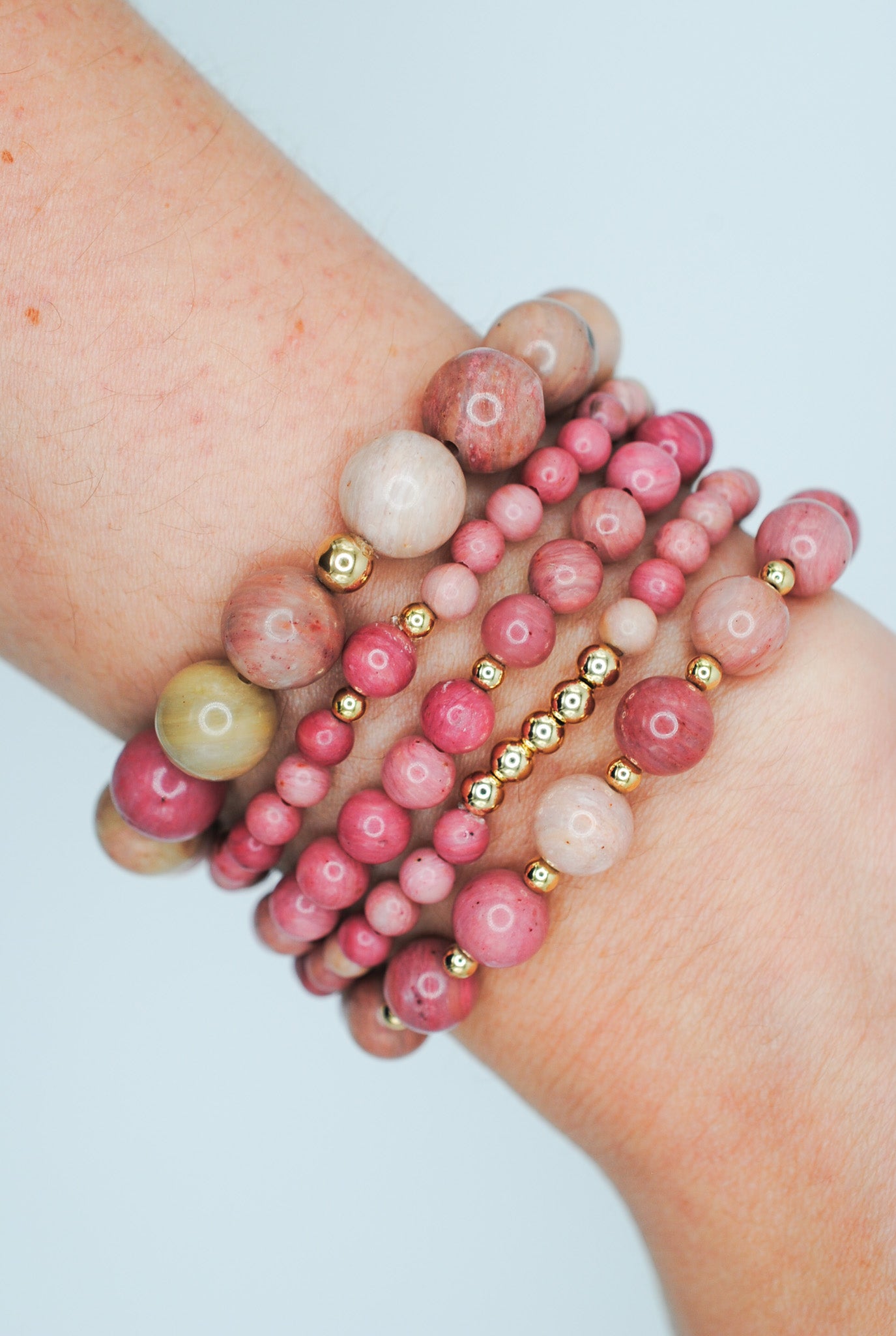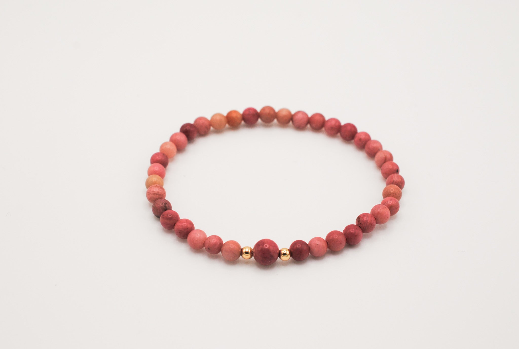 Details: 4mm beaded rhodonite gemstones with (1) 6mm beaded rhodonite gemstone and (2) 14K Gold Filled beads