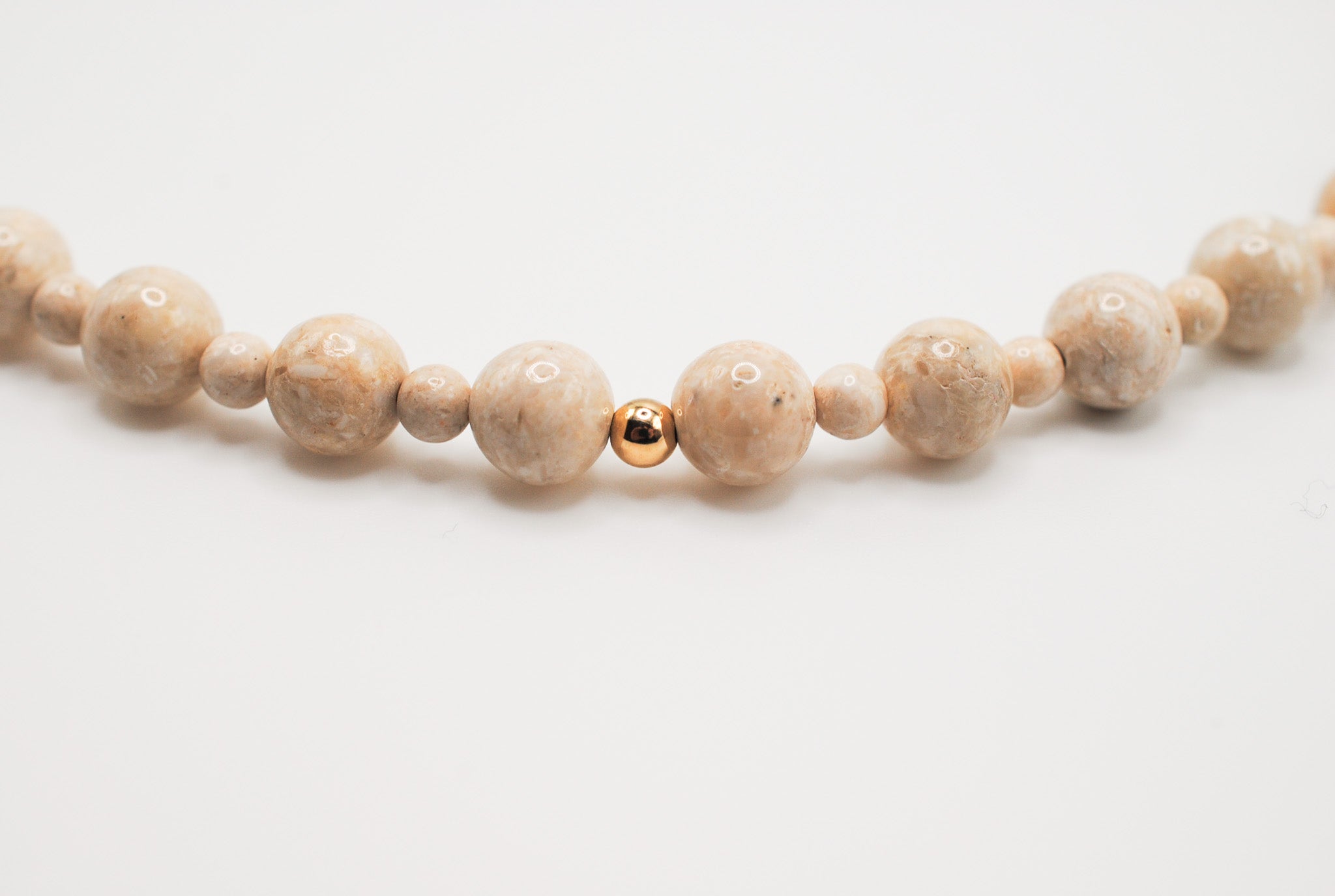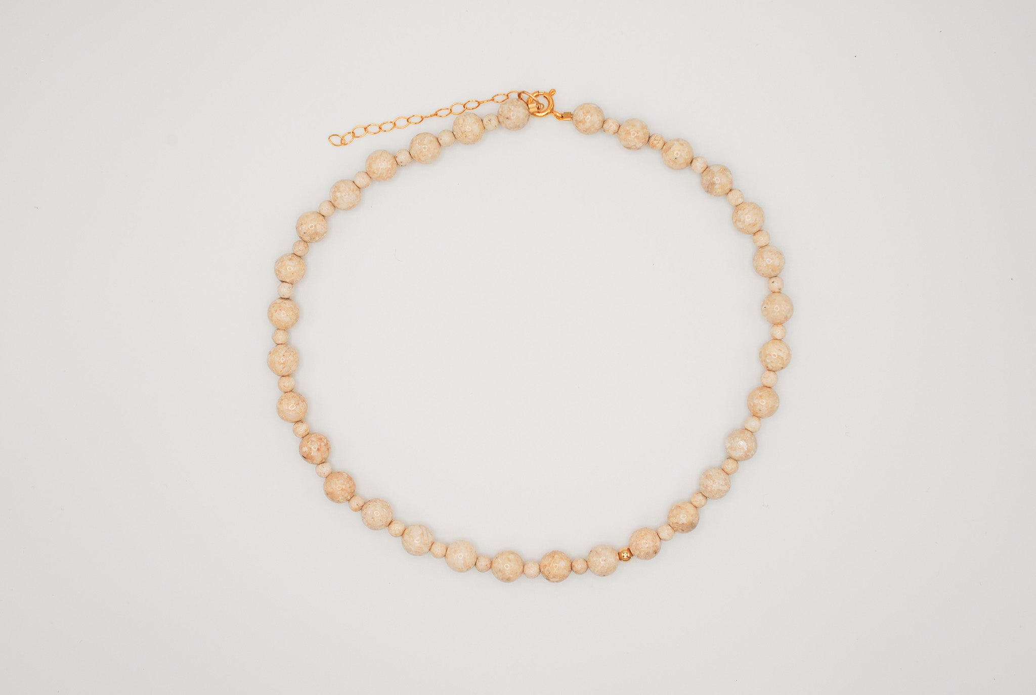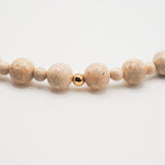 Size: 14 inch choker strung with riverstone and 1 gold filled off center bead with a 2 inch gold filled extender chain