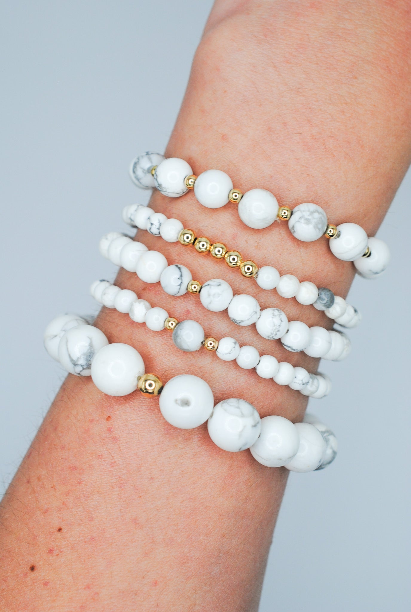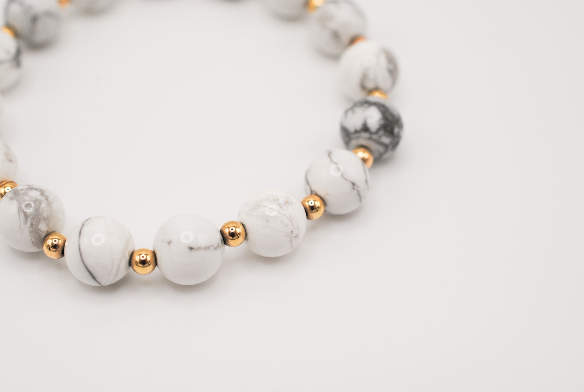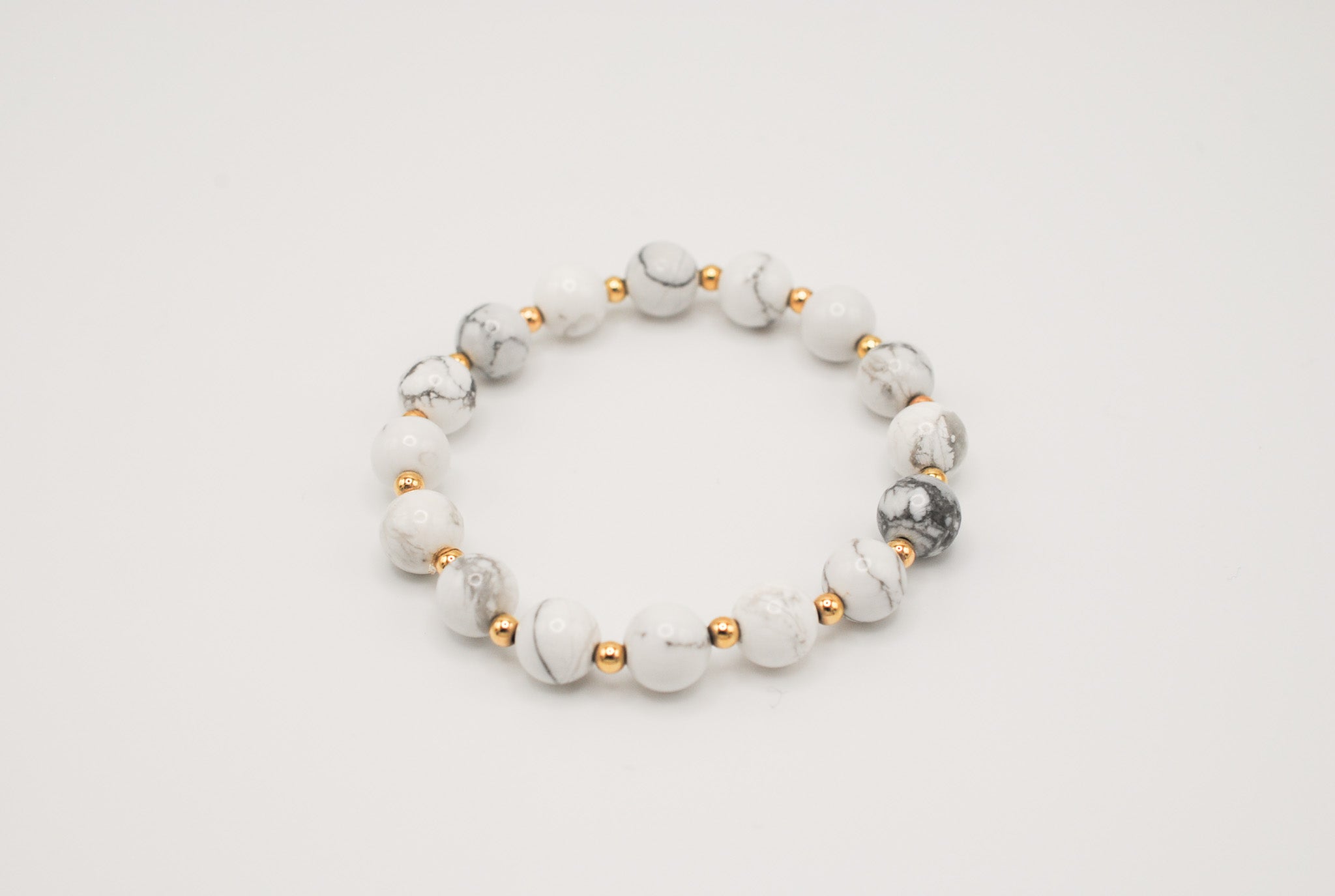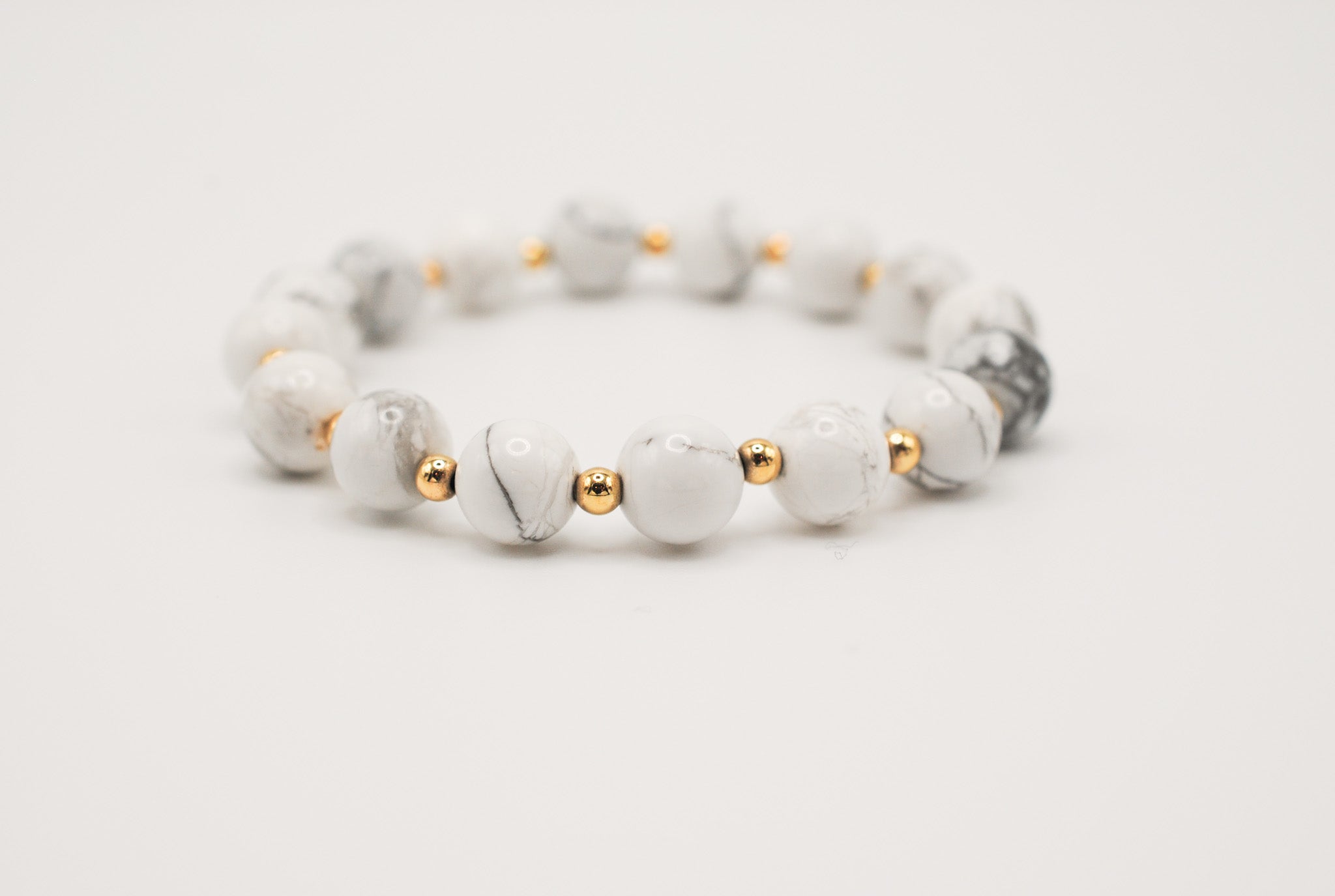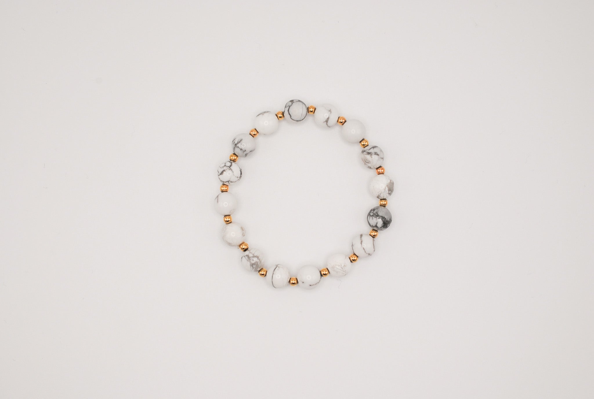 Details: Alternating 8mm beaded howlite and 14K Gold Filled beads