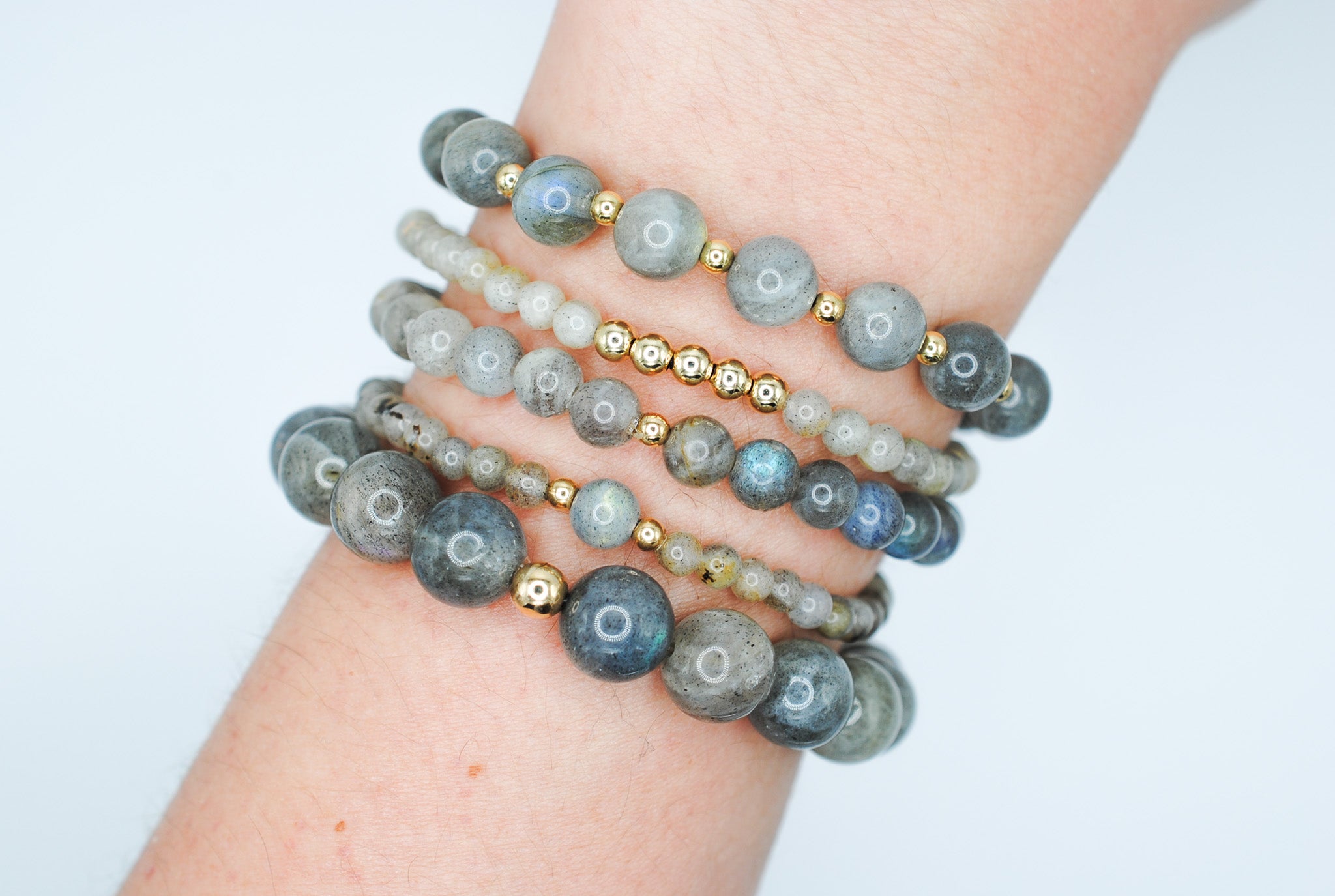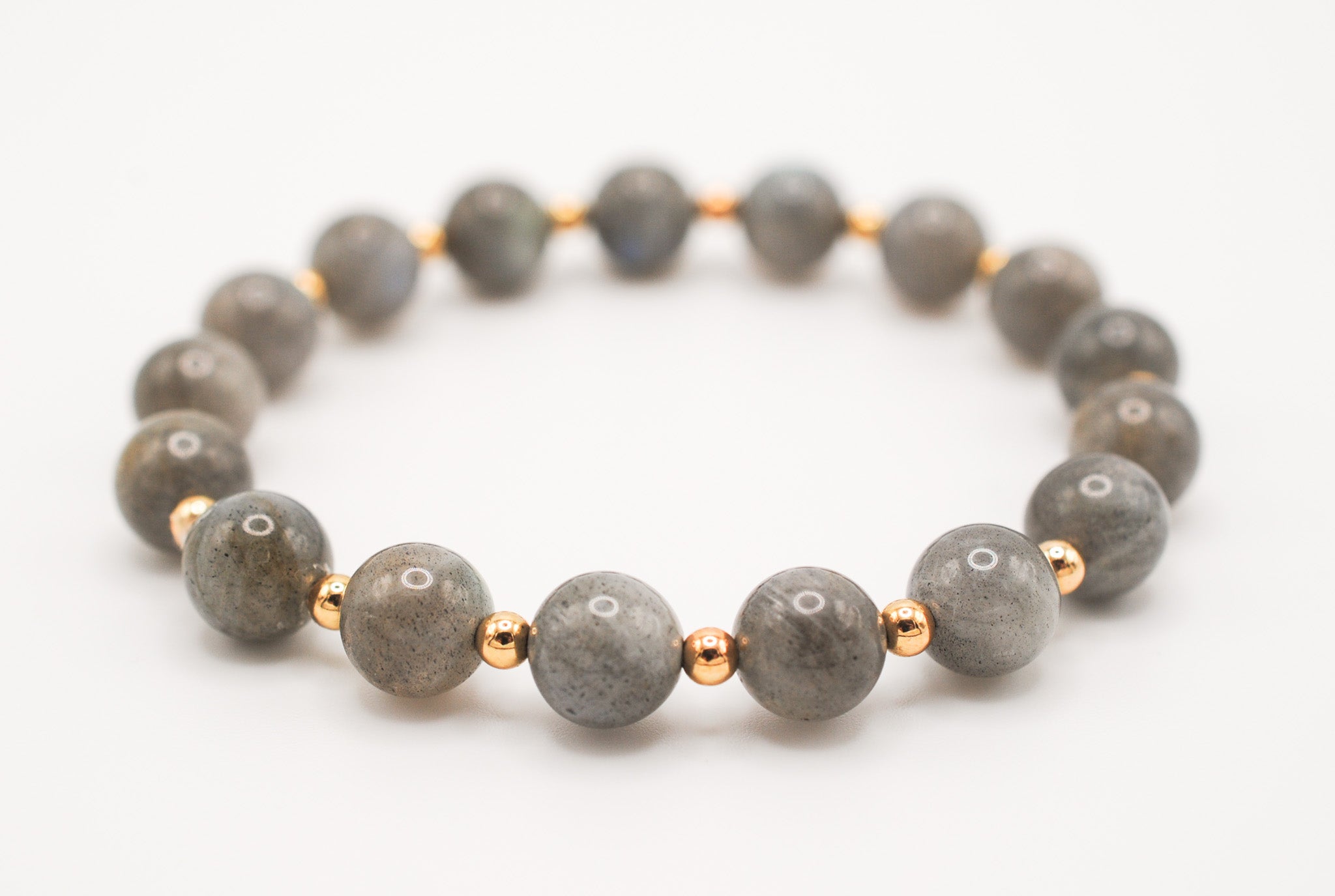 Details: Alternating 8mm beaded labradorite stones and 14K Gold Filled beads