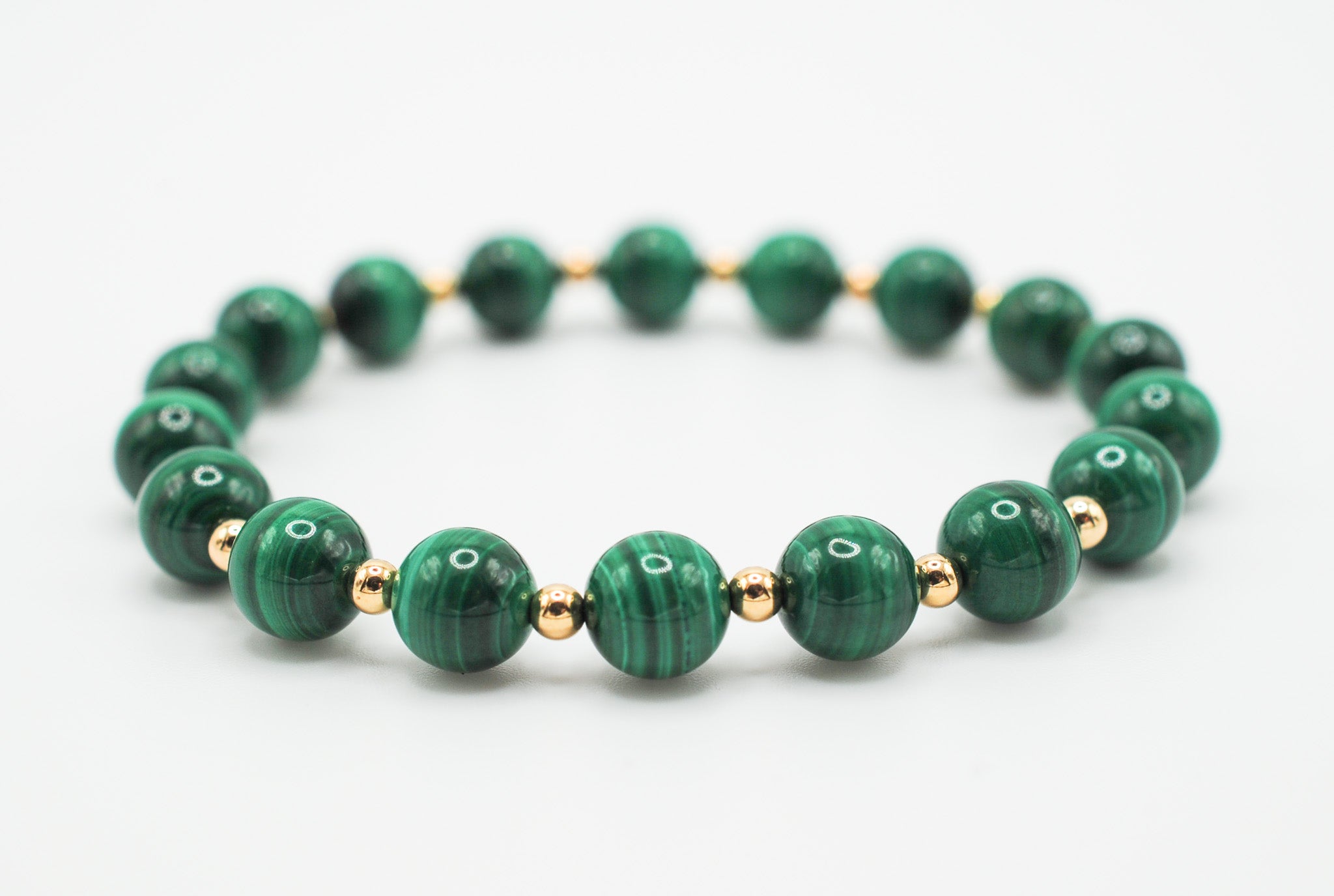Details: Alternating 8mm beaded malachite and 14K Gold Filled beads