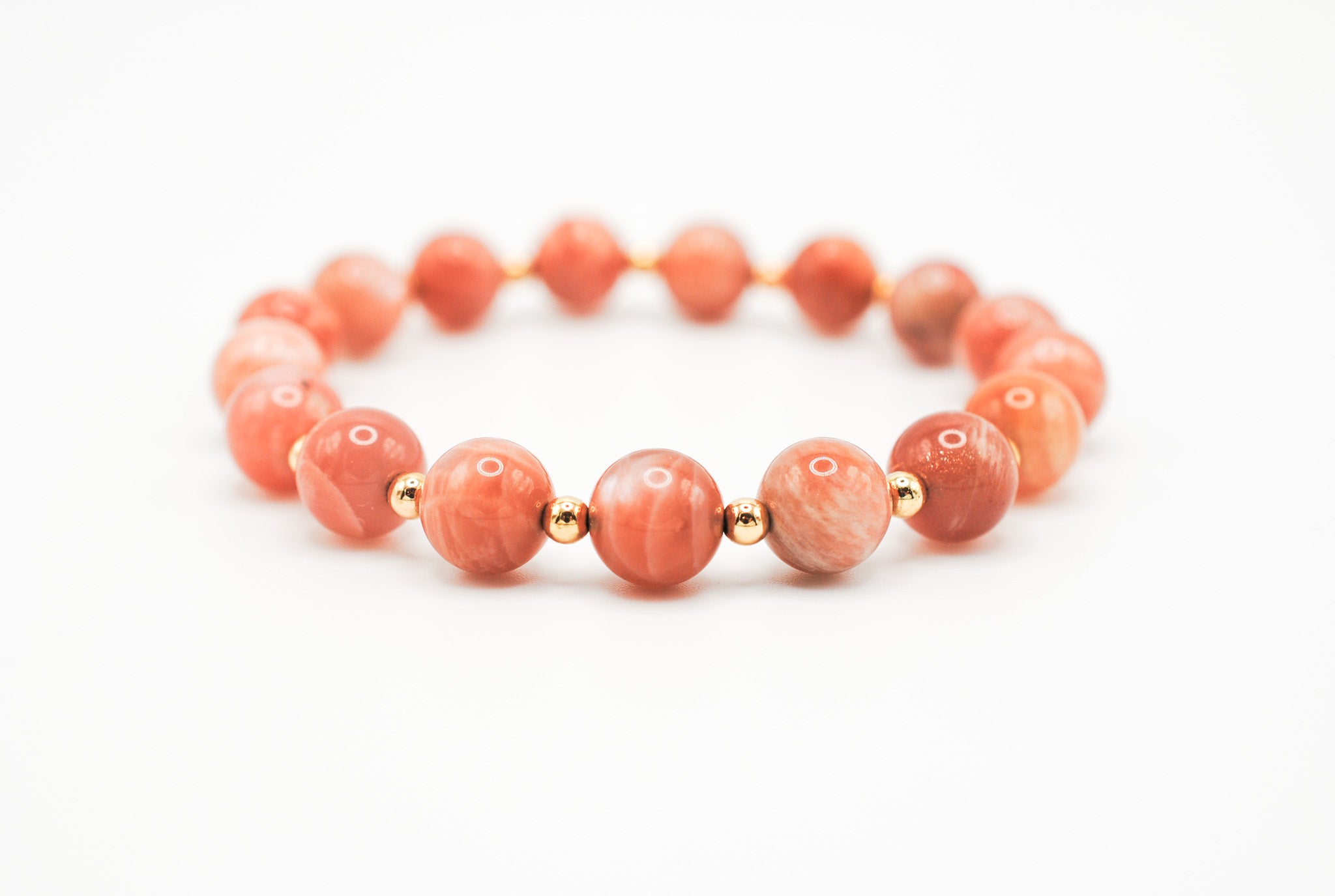 Legend has it that Pink Moonstone is formed by moonlight drops falling to Earth. This stone enhances psychic and intuitive abilities while supporting the alignment of the heart chakra, opening one to both spiritual and physical love.